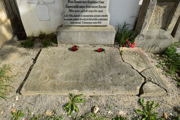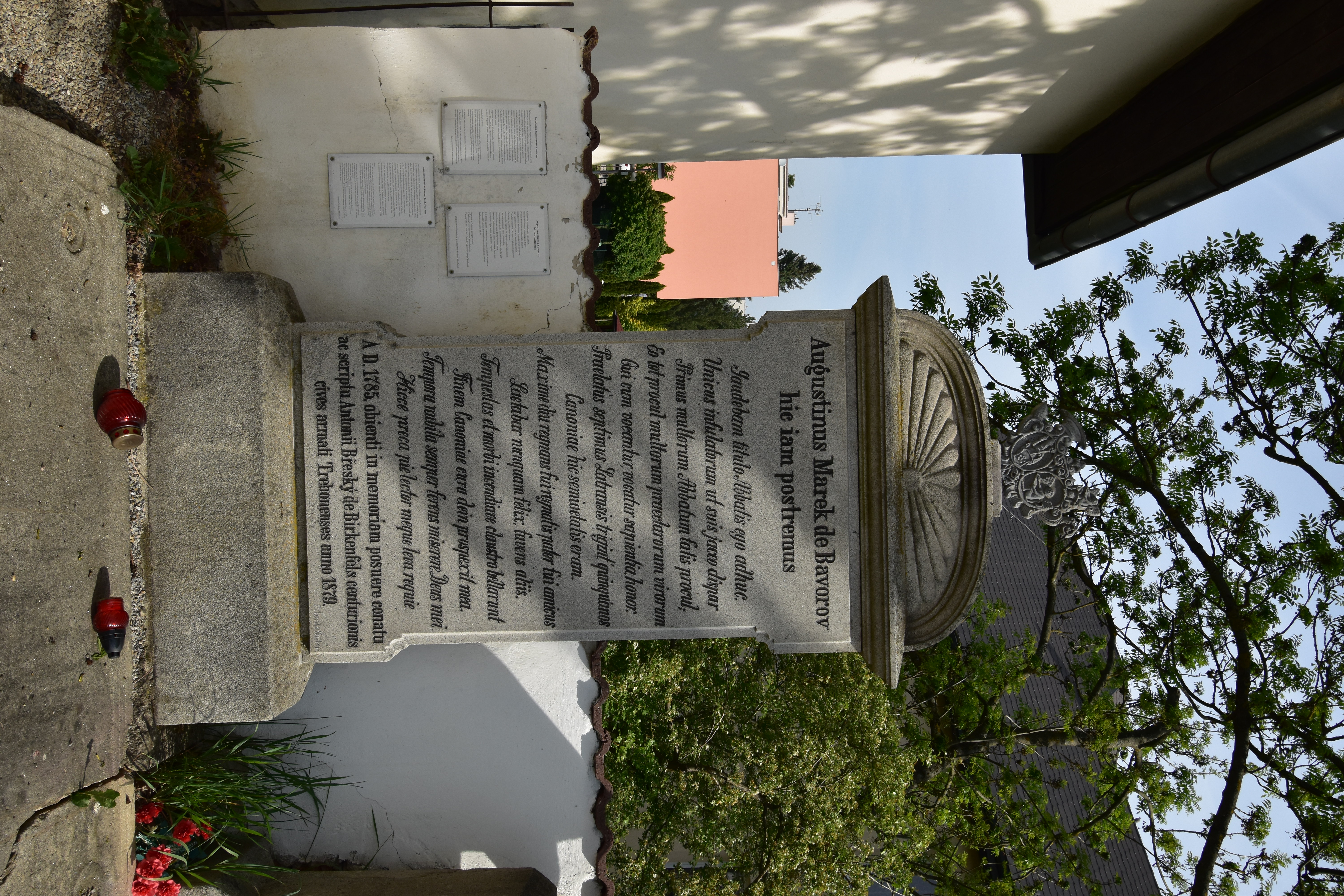 Třeboň, pozdně klasicistní náhrobek s ležící deskou barokního náhrobníku Augustina Marka z Bavorova, č.ÚSKP 45146/3-2346 (doprohlášení do areálu kostela sv. Alžběty)