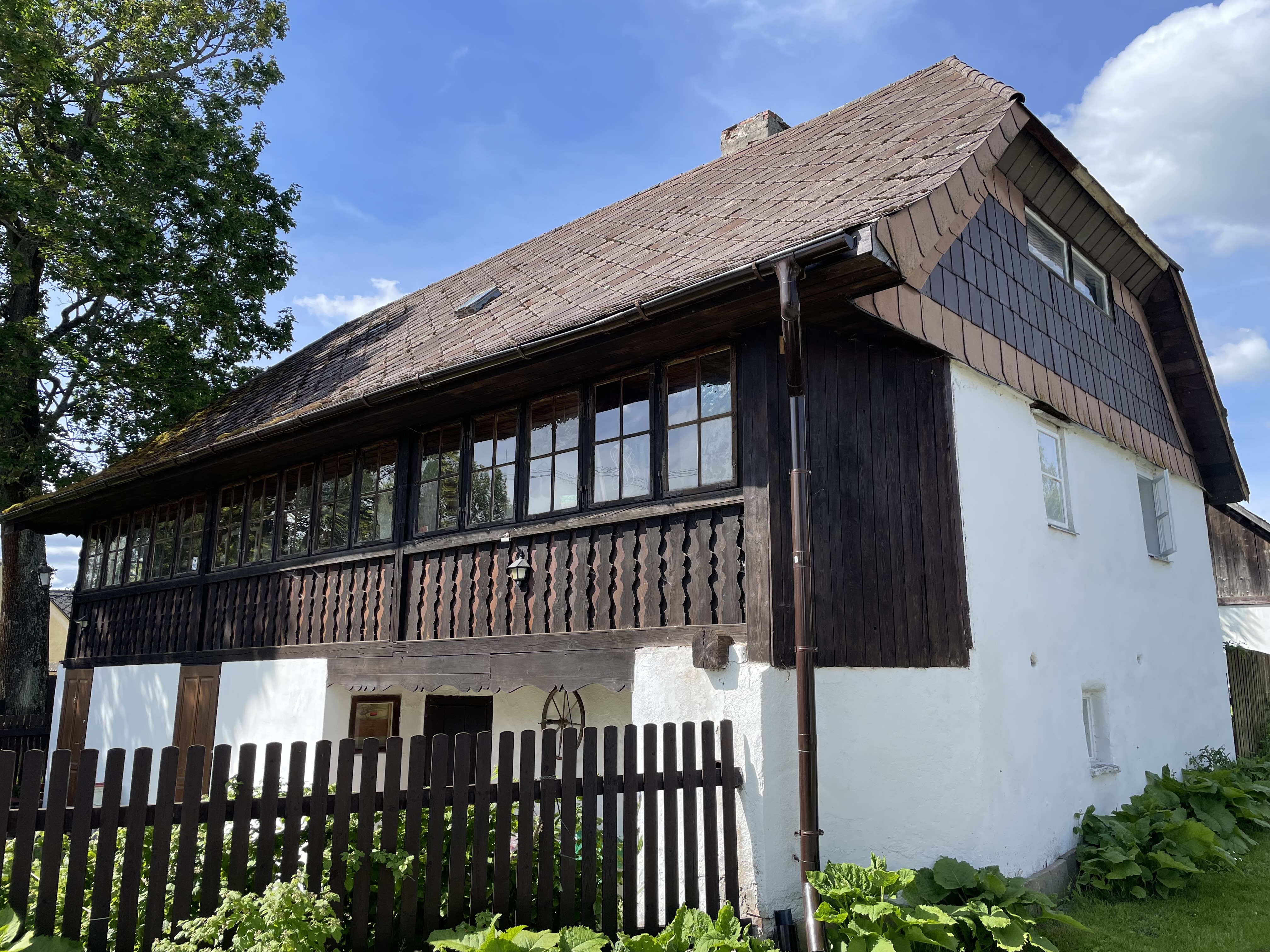 Dům se svým hmotovým řešením vymyká běžné typologii šumavských poloroubených domů. Jedná se o patrový dům s roubenou obytnou částí a zděným hospodářským traktem, který si zachoval řadu původních konstrukčních prvků.