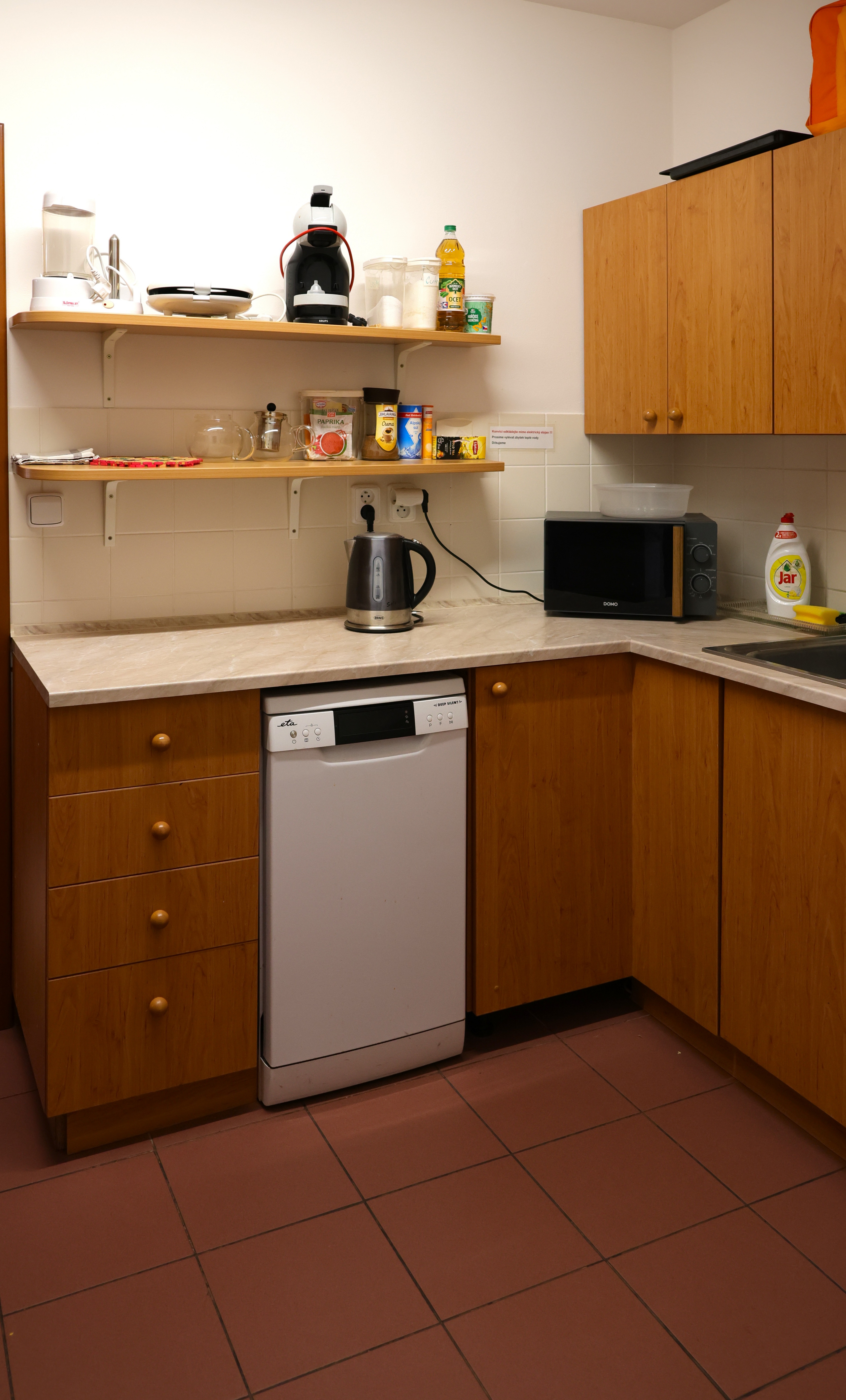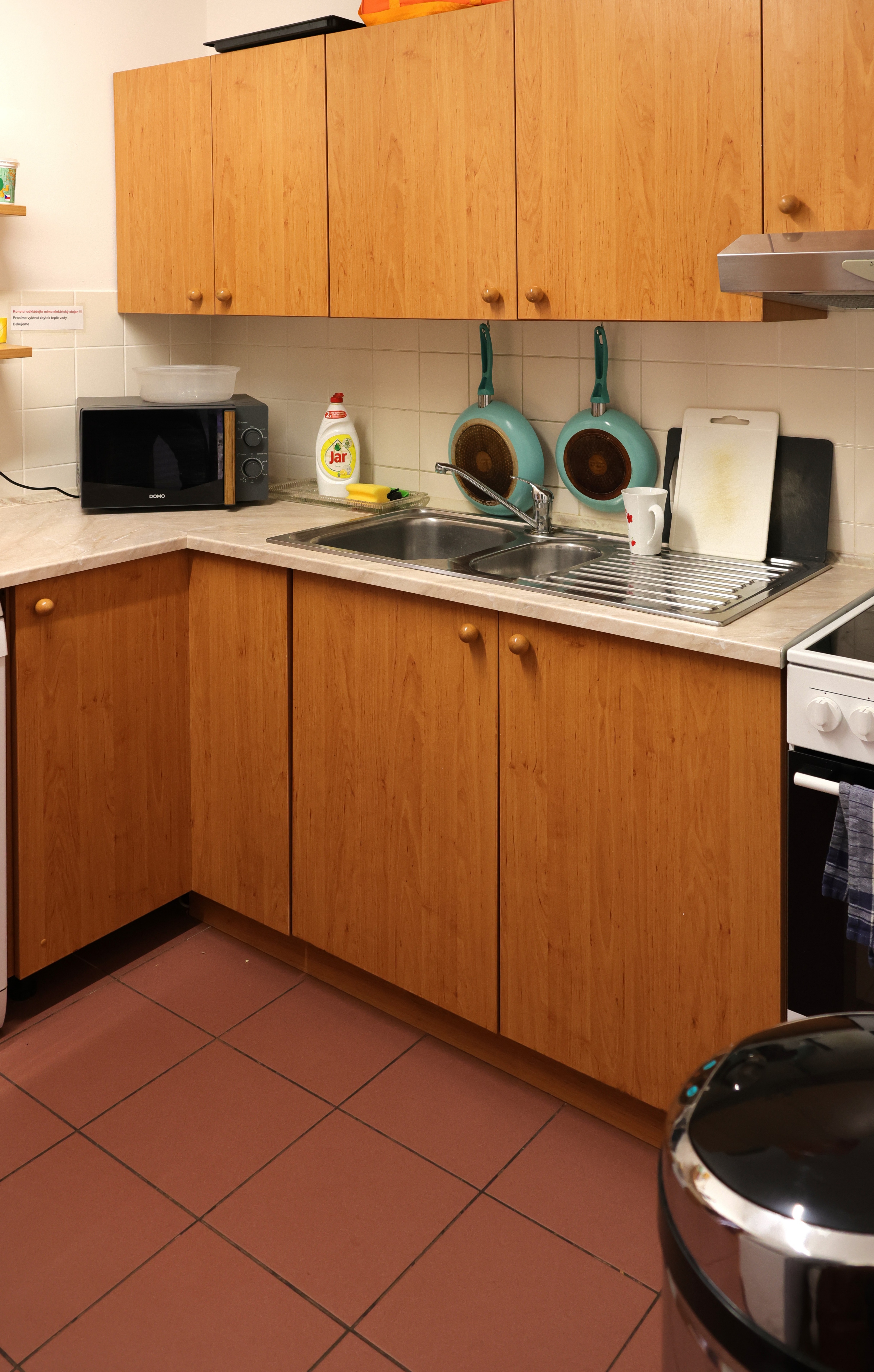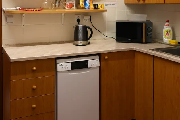- společná kuchyňka (lednice, mikrovlnná trouba, varná deska, rychlovarná konvice, základní nádobí)