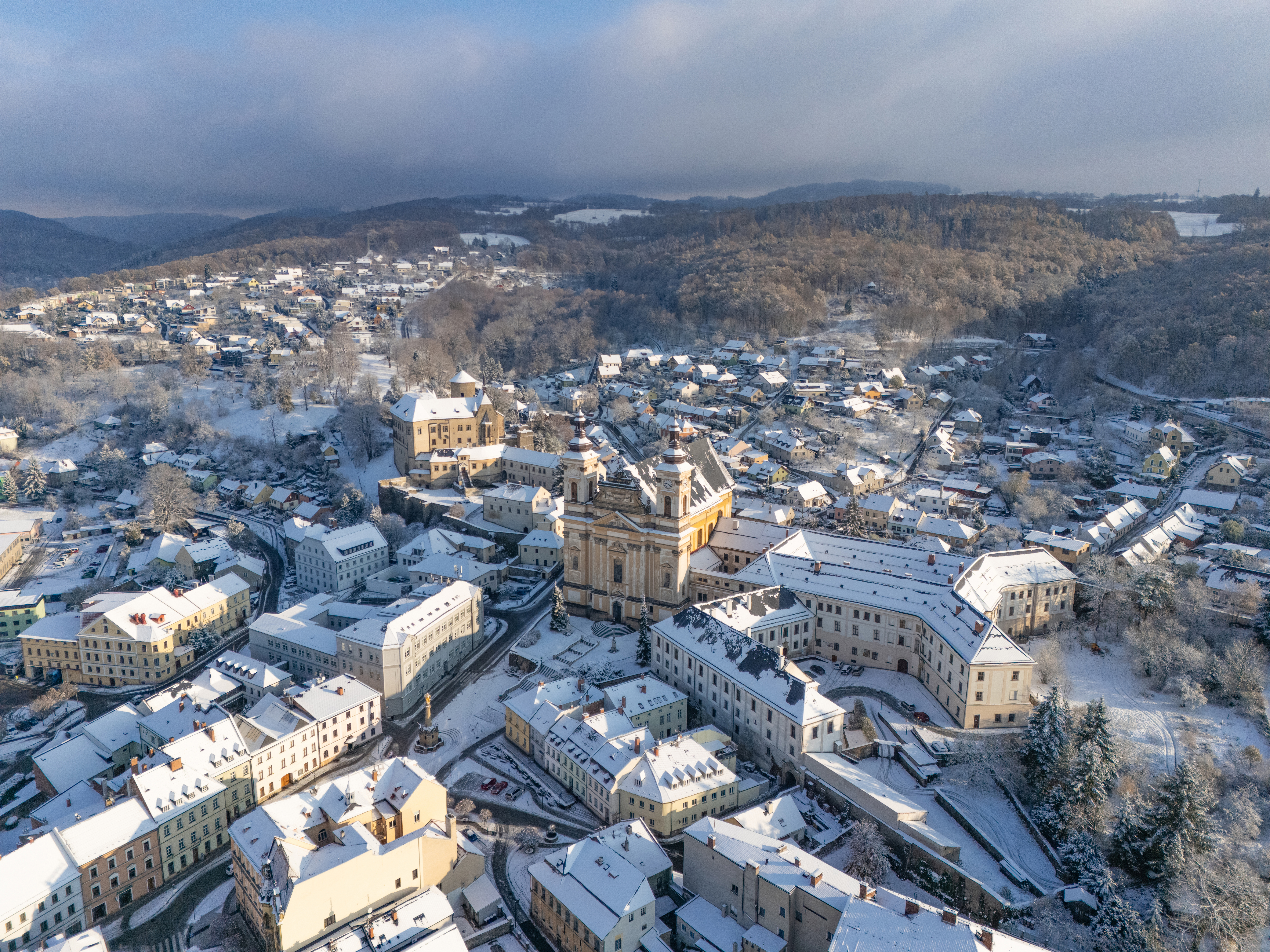 Obr. 1 Město Šternberk, pohled na centrum města s bývalým augustiniánským klášterem a kostelem Zvěstování Panny Marie. Foto: Zdeněk Adámek
