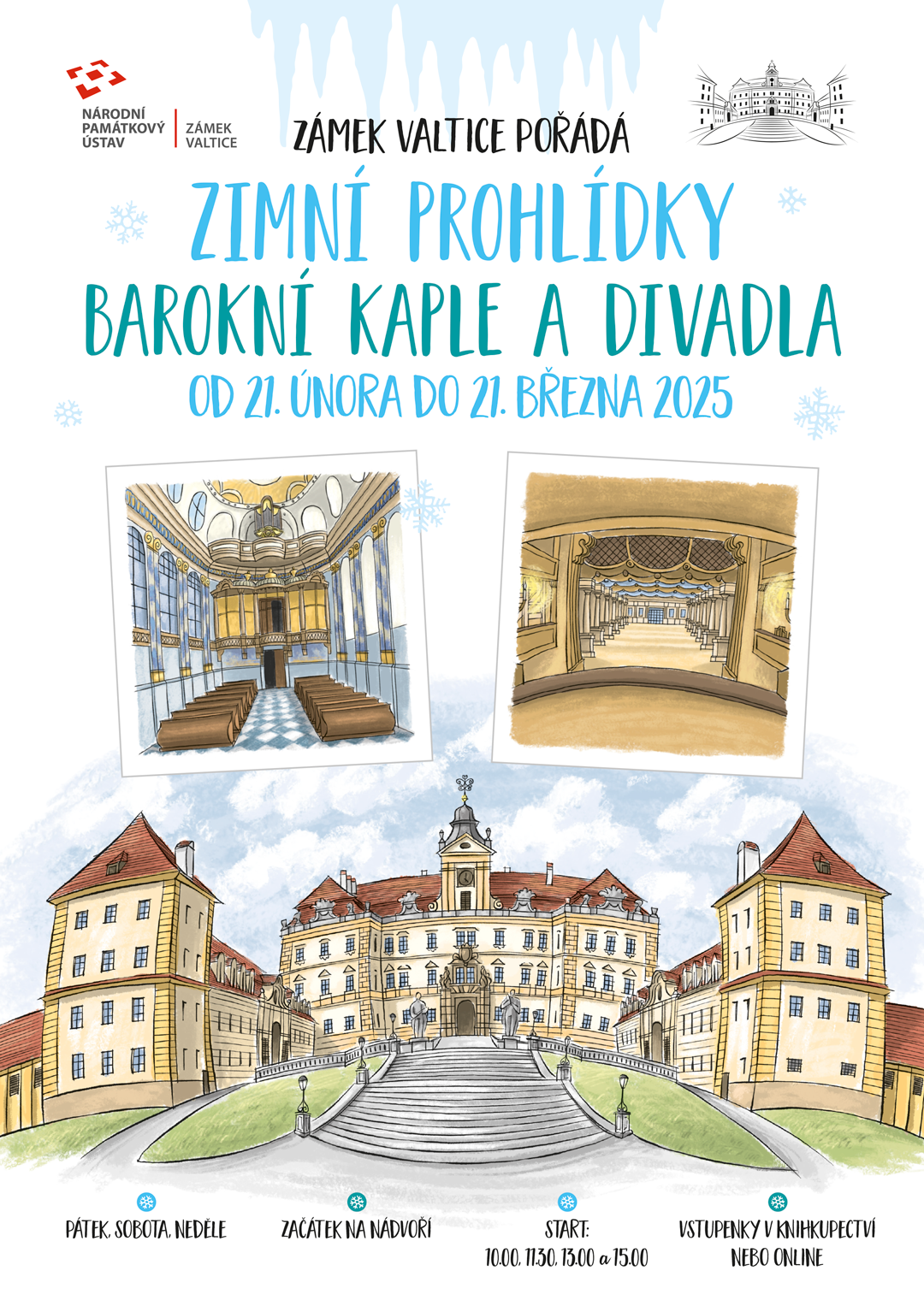 Oblíbené zimní prohlídky zámecké kaple a divadla nabídne zámek Valtice také v sezóně 2025, a to od 21. února až do 21. března.