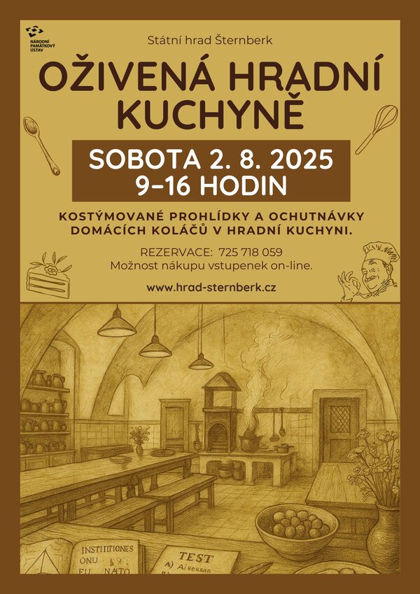 Provozním srdcem většiny památek byla v minulosti kuchyně. Zde se odehrávala velká část života služebných i hradních pánů. Na hradě Šternberk budete mít jedinečnou příležitost nahlédnout doslova pod pokličku při doprovodném programu OŽIVENÁ HRADNÍ KUCHYNĚ. Akce se uskuteční v sobotu 2. 8. 2025 od 9 do 16 hodin.