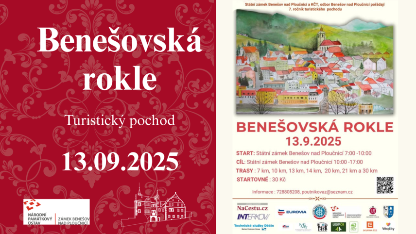 13. září 2025 se uskuteční 7. ročník turistické akce Benešovská rokle, která startuje i končí u nás na státním zámku Benešov nad Ploučnicí.