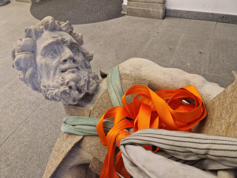 Převoz takto rozměrného a historicky cenného díla si vyžádal důkladnou přípravu a profesionální technické zajištění. Čtyřčlenný tým zkušených restaurátorů pod vedením Jana Kracíka, vedoucího ateliéru restaurování soch Akademie výtvarných umění v Praze, provedl ve středu odborné sejmutí sochy z kamenného podstavce. Pomocí portálového jeřábu a speciálně připravených silonových lan byla plastika bezpečně uložena do vodorovné polohy na transportní lůžko. Během čtvrtka pak dojde k její přepravě do Jízdárny Pražského hradu, kde proběhne její instalace na výstavní podstavec.