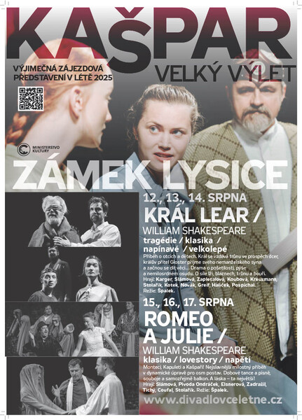 Jedna z nejlepších Shakespearových her – příběh o otcích a dětech. Král se vzdává trůnu ve prospěch dcer, králův přítel Gloster přijme svého nemanželského syna a začnou se dít věci… Drama o pošetilosti, pýše a nemilosrdném osudu. O síle lži, bláznech, trůnu a bouři.