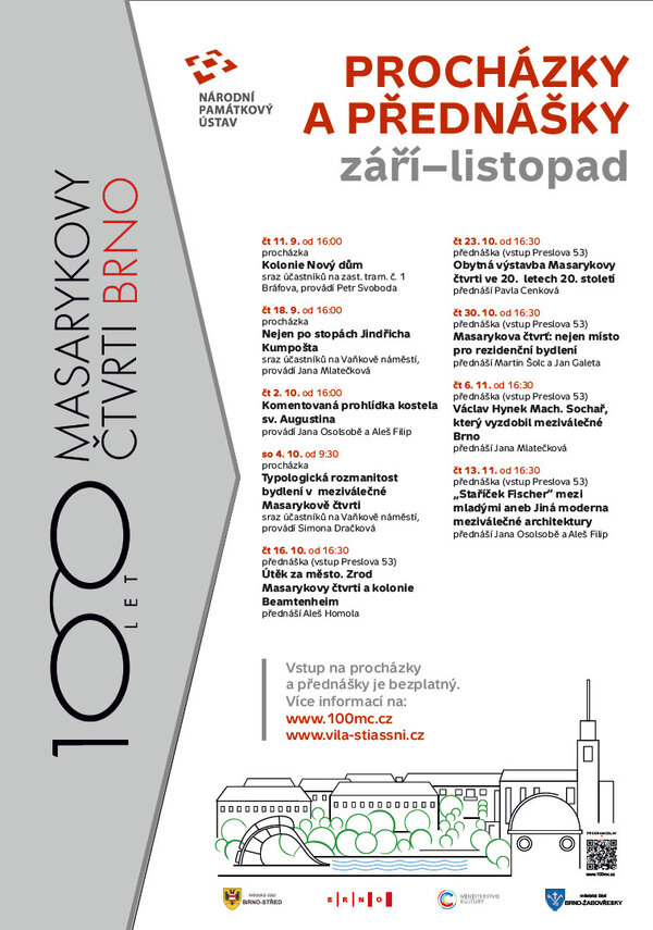 Slavíme 100 let brněnské Masarykovy čtvrti - doprovodný program v podobě procházek a přednášek