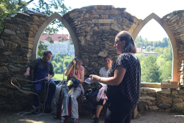 Třetí den setkání se frekventanti kurzu "odvděčili" Uherčicím tím, že vyčistili skálu pod umělou zříceninou od náletových dřevin. Práce odborně garantovali pracovníci Metodického centra zahradní kultury.