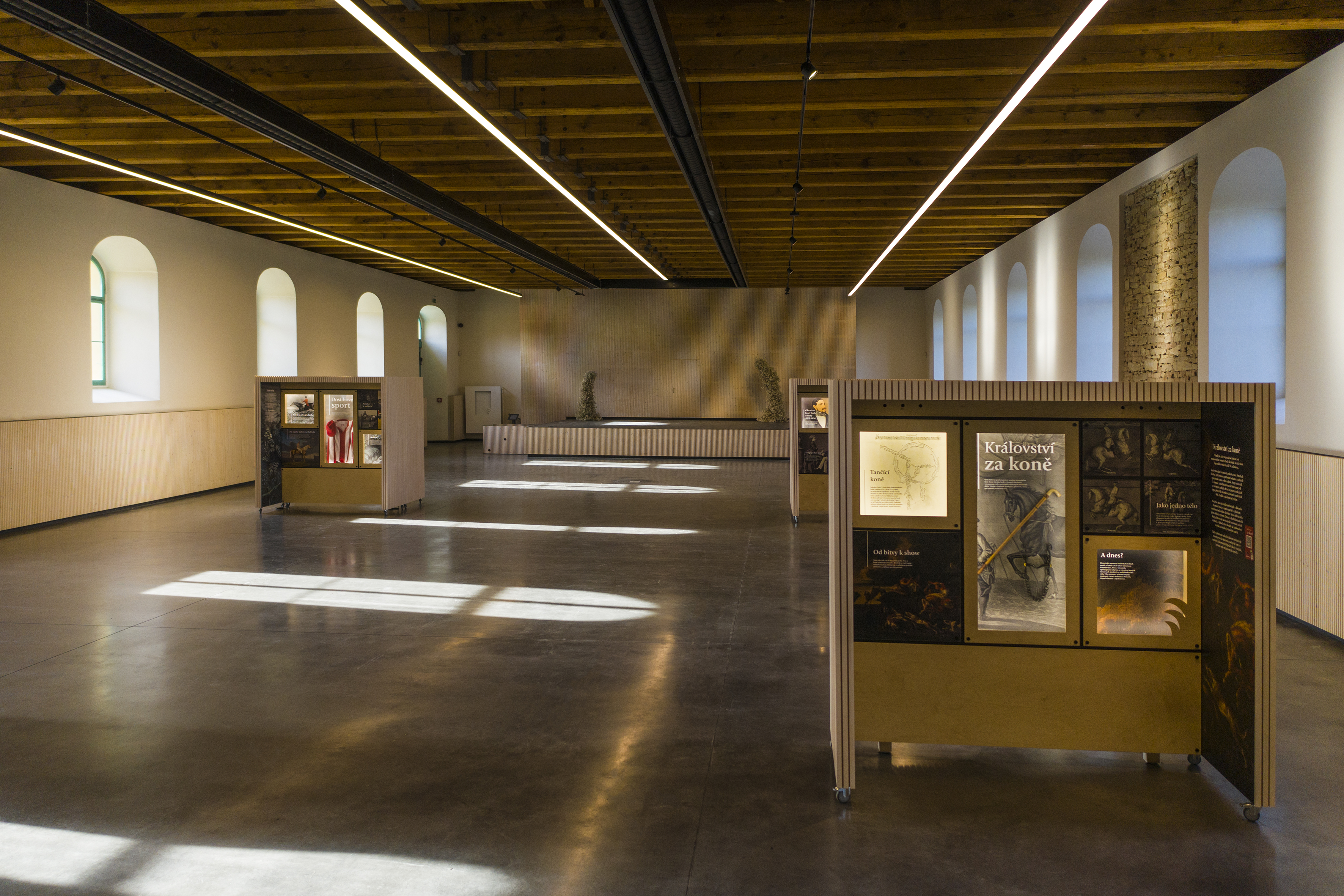 V jízdárně, jež během 20. století sloužila jako skladiště, díky tomu vznikl velkolepý prostor pro pořádání kulturních akcí. Pozornost zde upoutá mohutný otevřený krov barokní konstrukce, jehož vazné trámy mají rozpon téměř 16 metrů. Jde o repliku původní krovové konstrukce, která byla rozsáhle poškozena dřevokazným hmyzem a houbami a nebylo ji možné zachovat.