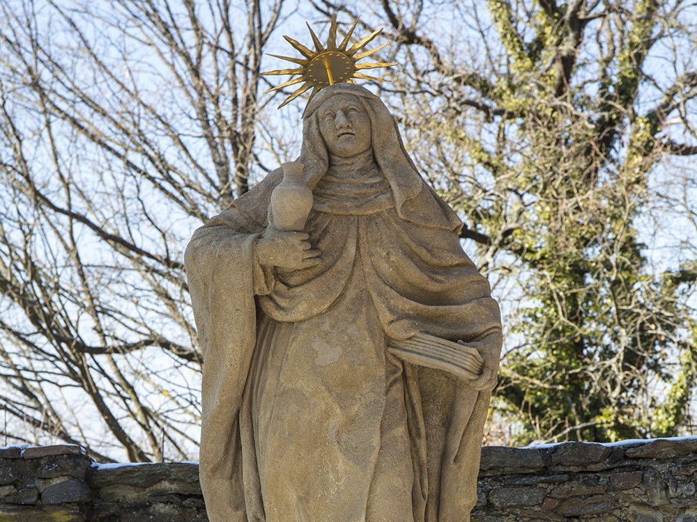 Soubor šesti kamenných soch světic a světců vytvořil pravděpodobně v roce 1764 regionálně působící sochař a řezbář František Ringelhahn. Původně se díla nacházela v Bystřici nad Úhlavou při komunikaci pod ohrazením zámeckého parku, od roku 1976 jsou však umístěna v areálu hradu a zámku Klenová. Před zahájením restaurování se sochy nalézaly již v havarijním stavu, jejich materiál vykazoval hloubkové narušení a rozpadal se. Závažné byly trhliny a praskliny ve spodních partiích.