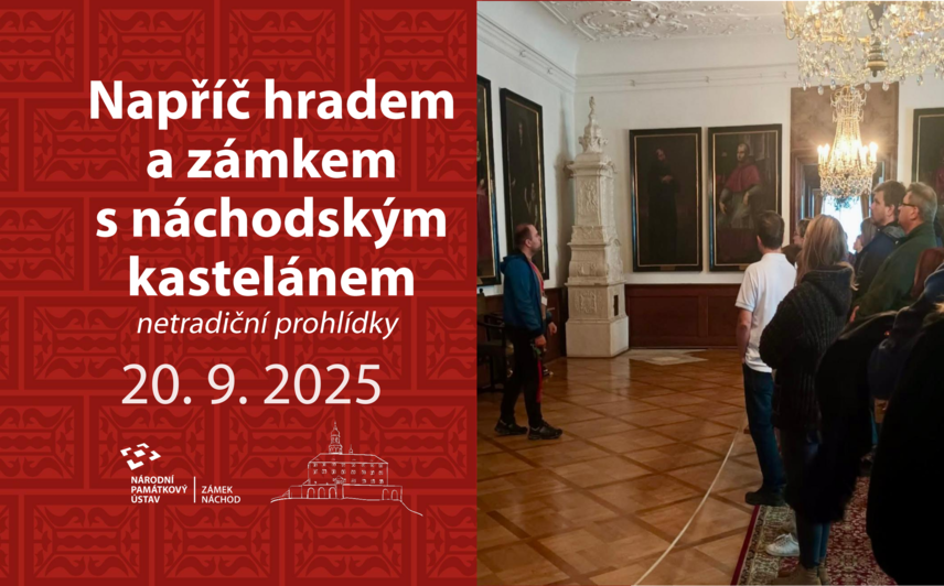 Chtěli byste poznat náchodský zámek trochu jinak? Přijďte na prohlídky s tím nejpověřenějším, novým kastelánem Mgr. Petrem Ťažkým. Představí vám hrad a zámek, jejich historii, architekturu a obyvatele v trochu jiném světle a zavede Vás i na místa, která Vám běžně průvodci neukážou. Nenechte si tedy ujít tuto speciální příležitost.