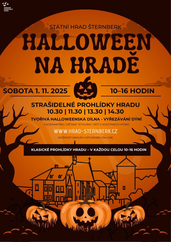 Vstupné na prohlídku je možné zakoupit na místě v pokladně hradu, případně lze vstupné zakoupit on-line na www.hrad-sternberk.cz. Budeme se těšit na vaši návštěvu na akci Halloween na hradě v sobotu 1. 11. 2025 od 10 do 16 hodin.