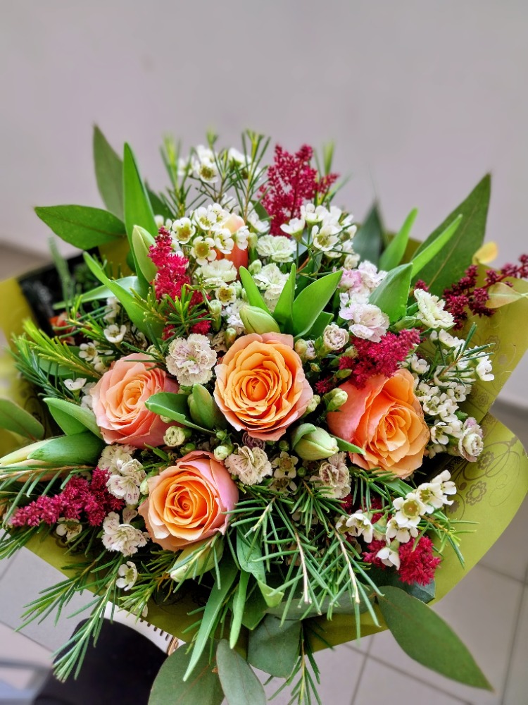 Naučíte se, jak správně ošetřit květiny, šikmý řez a jak uvázat dárkovou kytici do spirály, kterou si odnesete domů.