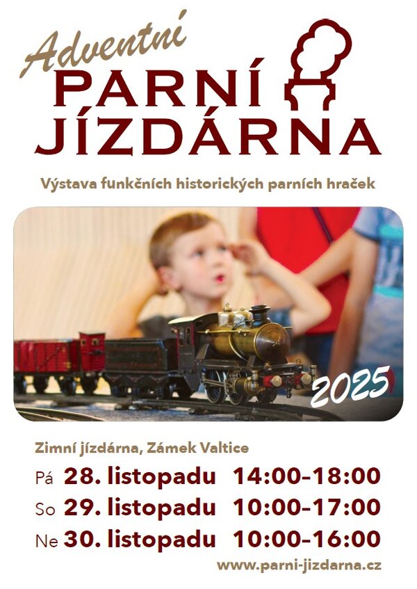 Parní jízdárna je nepravidelně pořádaná prezentace historické hračkové a modelové železnice tzv. velikosti I (Gauge one) o rozchodu 45/48 mm. Přijďte se podívat na zázrak techniky, který nepřestává udivovat ani téměř 200 let od svého vynálezu. Kromě modelů parních vlaků z let 1915 až 1935 uvidíte i současné modely parních lokomotiv.