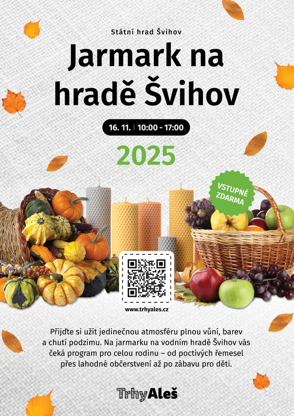 Přijďte si užít jedinečnou atmosféru plnou vůní, barev a chutí podzimu. Na jarmarku na vodním hradě Švihov vás čeká program pro celou rodinu – od poctivých řemesel přes lahodné občerstvení až po zábavu pro děti.
