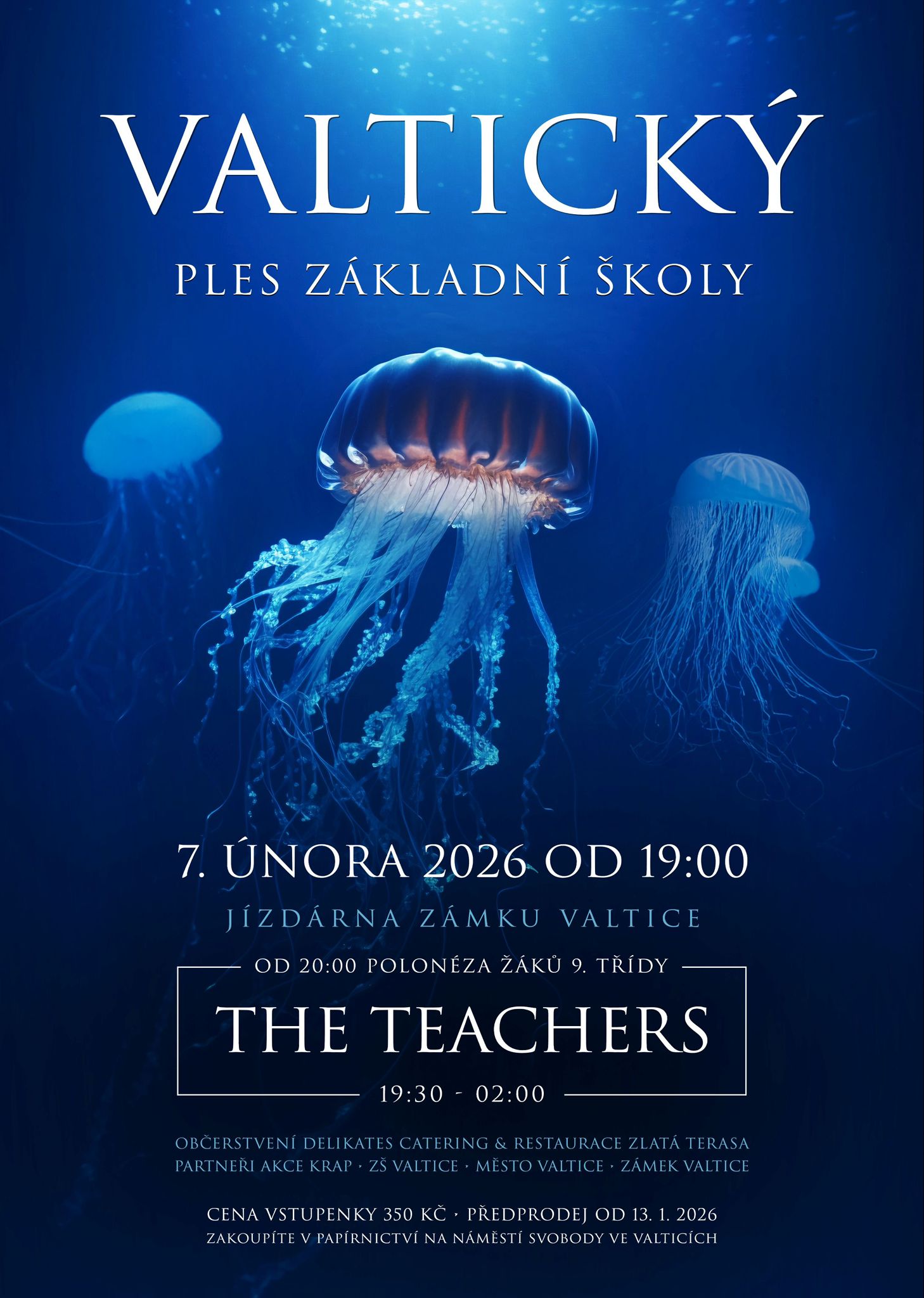 Základní škola Valtice pořádá v sobotu 7. února 2026 ples v Zimní jízdárně zámku Valtice. Vstup na akci je od 19:30, zahájení plesu je ve 20:00.