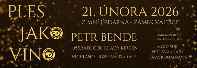 Vystoupí Petr Bende, O5 a Radeček, Ready Kirken, Highland, Josef Vališ. Bohatá tombola od CHÂTEAU VALTICE a Vinařství Kovacs.