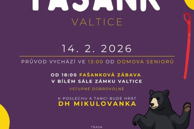 Valtická krojovaná společnost srdečně vás zve na tradiční fašankové veselí, které se uskuteční v sobotu 14. února 2026. Přijďte si užít den plný tradic, masek a dobré nálady!