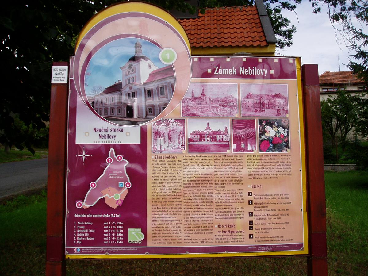 Okružní naučná stezka má délku 5,7 km. Začíná u barokního zámku v Nebílovech a má celkem 6 zastavení s informačními tabulemi.