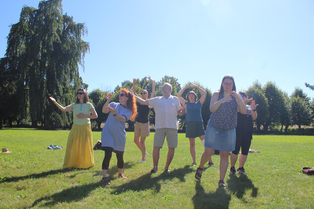 Následující den se konala prohlídka zámeckého parku pod vedením Lenky Křesadlové z Metodického centra zahradní kultury (NPÚ). Poutavým způsobem seznámila účastníky letní školy s historickými vrstvami zahrad od renesanční přes barokní až po krajinářský park. Prohlídka byla obohacena o drobné edukační intervence naznačující jakým způsobem je možné informace didakticky transformovat pro děti a mládež.