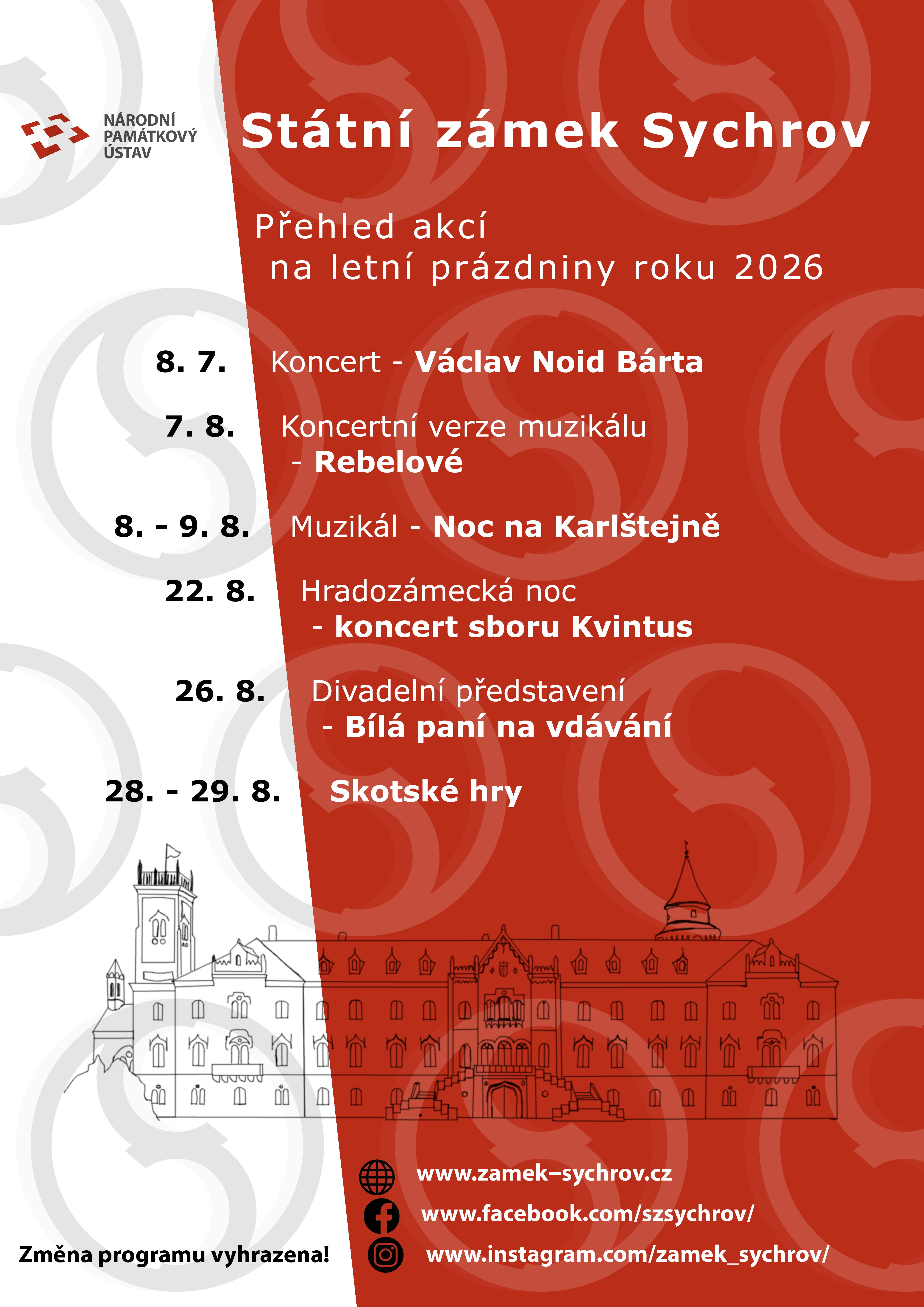 Přehled plánovaných akcí na zámku Sychrově pro rok 2026.