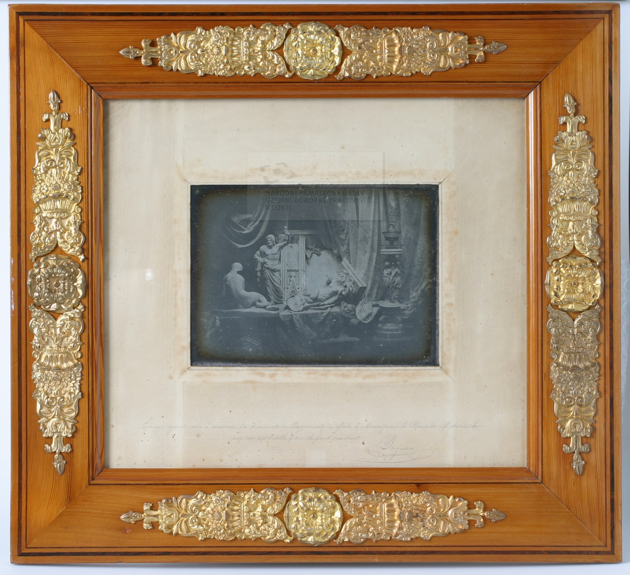 Louis Daguerre, francouzský malíř a vědec, který ve třicátých letech 19. století vyvinul tuto první praktickou metodu fotografování, jednu ze svých prvních daguerrotypií věnoval darem knížeti Klemensi von Metternichovi ještě před zveřejněním patentu. O tom se dočteme v dedikaci na zadní straně pasparty a potvrzuje to také dochovaná korespondence. Předpokládá se, že fotografie byla pořízena v roce 1839, ve stejném roce, kdy Daguerre oznámil vynález tohoto procesu.