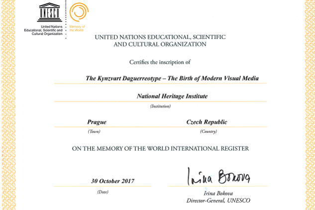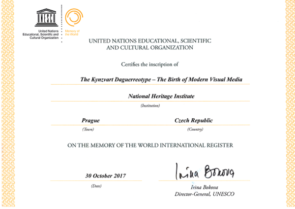 Kynžvartská daguerrotypie se díky svému významu v roce 2017 dostala na prestižní seznam světového kulturního dědictví UNESCO Paměť světa. Ministr kultury Ilja Šmíd 5. dubna 2018 v Nostickém paláci předal zástupcům institucí, které nominace připravily, certifikáty potvrzující jejich zápis.