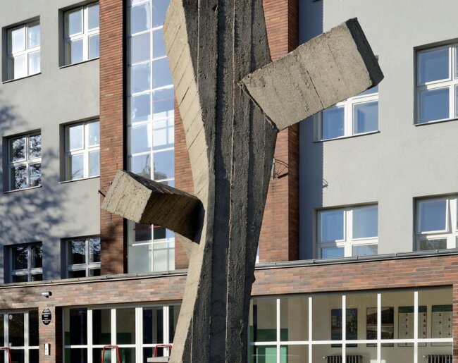 Architekt Josef Hrejsemnou si k realizace uměleckého díla v předprostoru hlavního průčelí výpravní budovy vybral sochaře Václava Urubu, který ve 2. polovině 60. let tvořil betonové plastiky v brutalistickém stylu. Jedno ze svých vrcholný děl realizovali právě před havířovským nádražím.