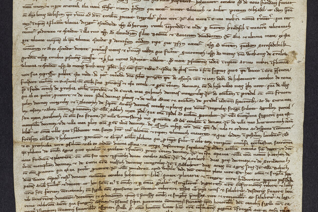 Zakládací listina je psaná latinsky na pergamenu o rozměrech 30,5 × 36,5 centimetru. Je opatřena pečetí zavěšenou na zeleno-červených hedvábných nitích a byla vydána v roce 1259 pražským biskupem Janem II. z Dražic, který potvrdil rozsáhlé dary zakladatele kláštera Voka I. z Rožmberka. „Kromě vymezení klášterního majetku dokument obsahuje například i historicky první zmínku o Čertově stěně, tehdy zapsané staročesky jako hora Strašidelník,“ uvedl hlavní kurátor výstavy VLTAVA slavná & splavná Petr Pavelec z Národního památkového ústavu.