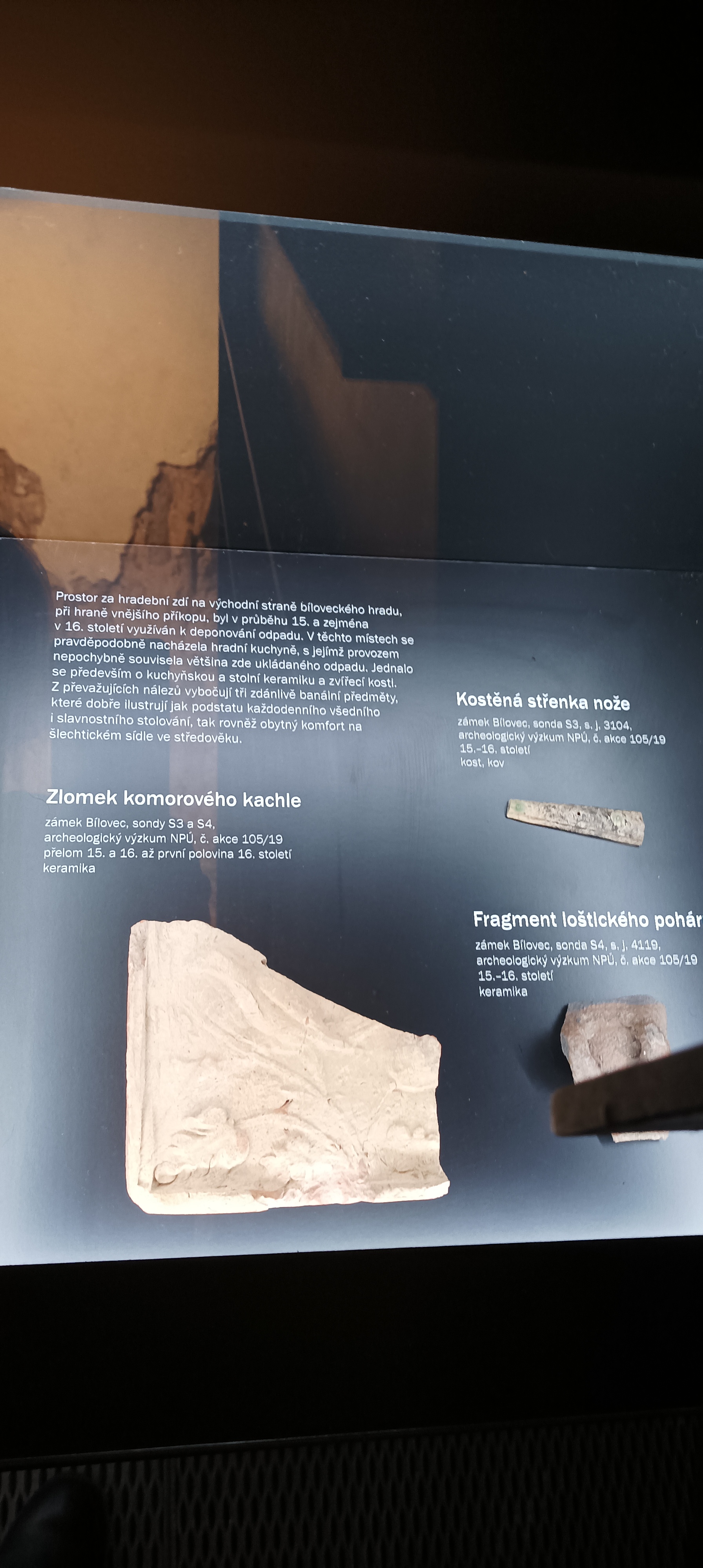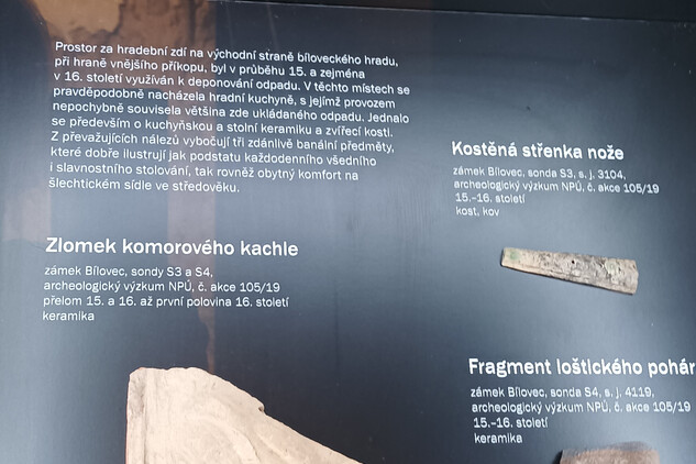 Výstava Paměť zámků a jejich krajiny: Bílovec. Od hradu k zámku byla zahájena ve čtvrtek 30. 10. v expozici Skrytý středověk. Výstava představuje možnou podobu pozdně gotického městského hradu, renesančního zámku a v neposlední řadě i samotného města Bílovce v hradbách formou modelů a kresebných rekonstrukcí. Ve videích a v krátkém dokumentu můžeme tedy „projít stavbou.“ Zmapován je průběh archeologických prací a stavebněhistorických poznatků. Vystaveny jsou nálezy, například vzácný renesanční snubní prsten. Více se dozvídáme o zásobování bílovecké kuchyně, o pravidlech stravování a stolování, dobové podobě kuchyní. Ukázku připravenou prof. Irenou Korbelářovou ze Slezské univerzity v Opavě a jejím týmem bylo možné ochutnat při zahájení výstavy. Expozice se dále věnuje majitelům objektu. Pomyslným průvodcem bíloveckým gotickým hradem je rytíř Mikuláš mladší z Vladěnína, zatímco renesanční zámek reprezentuje urozená Kristýna Pražmová z Bílkova, rozená z Lapic.