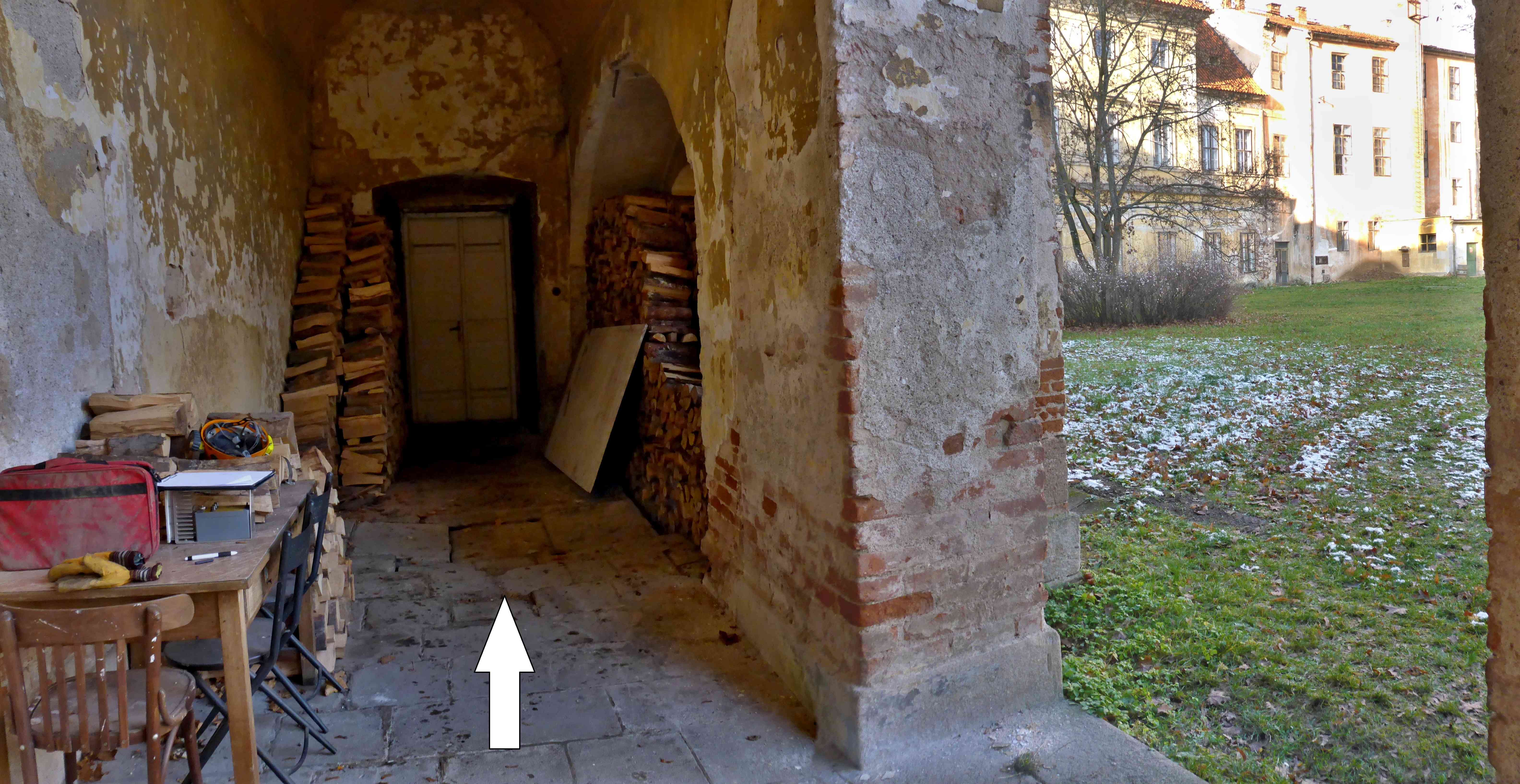 Poměrně častou „havárií“ na památkových objektech bývá pokles dlažby. Příčinou je téměř vždy postupné sesedání nezhutněného podkladu – dost často zásypu nějakého objektu, který se pod dlažbou nachází. Takový případ nastal také v roce 2015 v dnešní ambitové chodbě prelatury bývalého cisterciáckého kláštera v Plasích.