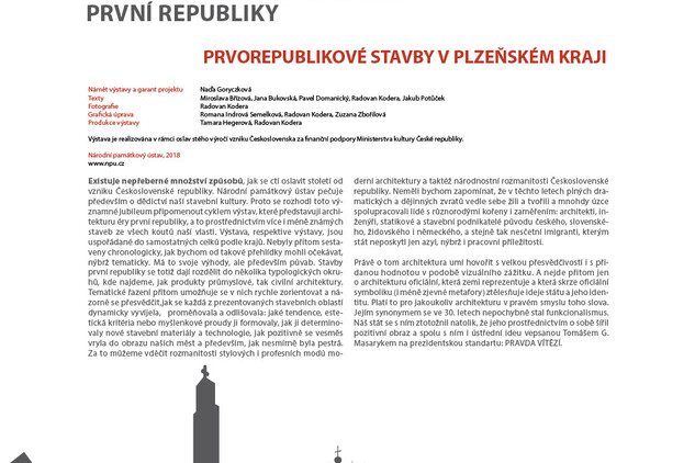 Výstava byla součástí série regionálních výstav Národního památkového ústavu, probíhající v rámci oslav stého výročí vzniku Československa od začátku roku 2018. Výstava představila stovku meziválečných staveb v deseti různých typech architektury.