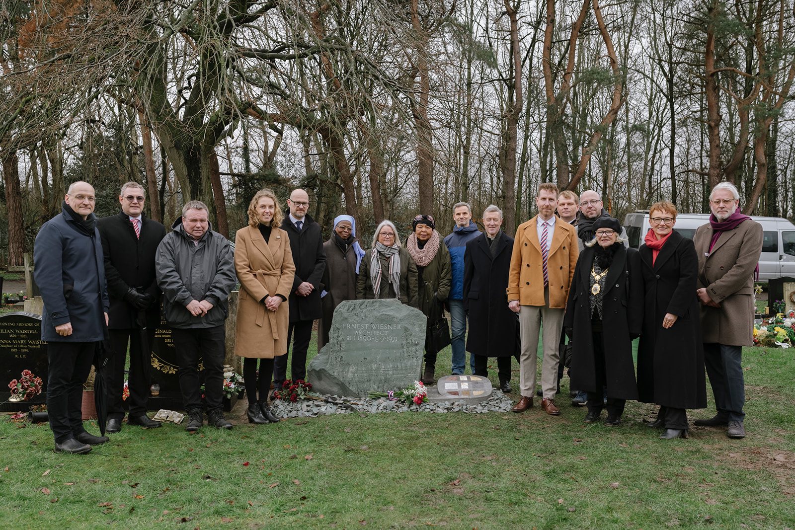 Aby se na odkaz Ernesta Wiesnera nezapomnělo ani v Anglii, byla vytvořena speciální pamětní deska. Ta je složená z devíti kamenů – fragmentů z jednotlivých staveb od Wiesnera, kam se vedle vily Stiassni řadí i Palác Morava nebo budova Českého rozhlasu Brno. Lednového slavnostního odhalení díla Tomáše Růžičky a Radima Skácela se v Liverpoolu osobně zúčastnila i Kateřina Konečná, která nám krátce po návratu do Brna poskytla rozhovor: