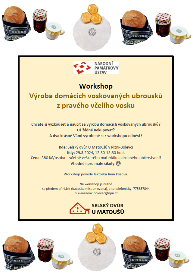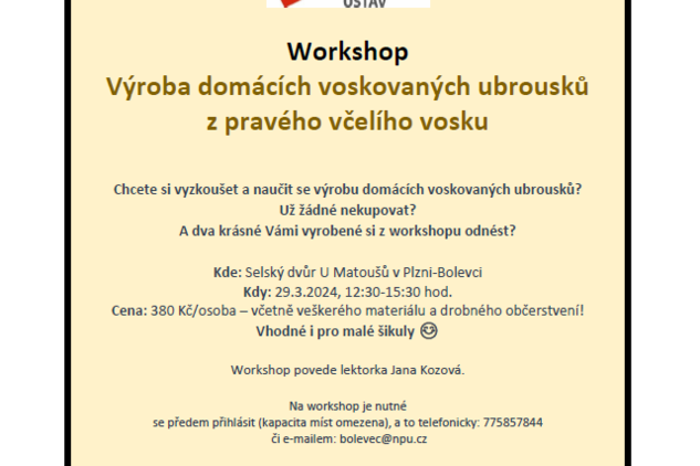 Na workshop je nutné se předem přihlásit (kapacita míst omezena), a to telefonicky: 775857844 či e-mailem: bolevec@npu.cz