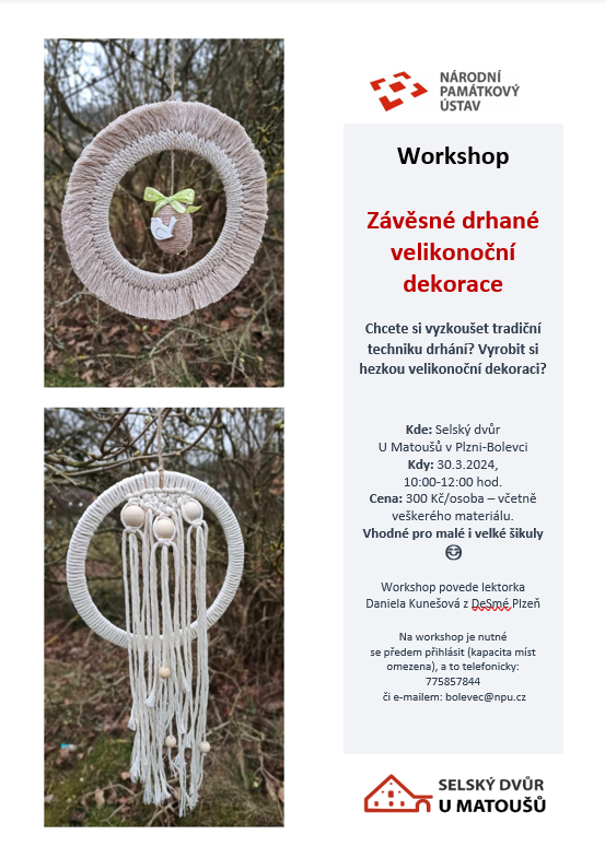 Na workshop je nutné se předem přihlásit (kapacita míst omezena), a to telefonicky: 775857844 či e-mailem: bolevec@npu.cz