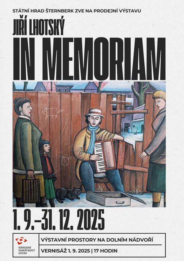 Zveme vás na prodejní výstavu obrazů s názvem Jiří Lhotský IN MEMORIAM. Výstava bude přístupná od 1. 9. do 31. 12 2025 ve výstavních prostorách na dolním nádvoří hradu Šternberk v rámci otevírací doby hradu. Slavnostní vernisáž se uskuteční v pondělí 1. 9. 2025 v 17 hodin.