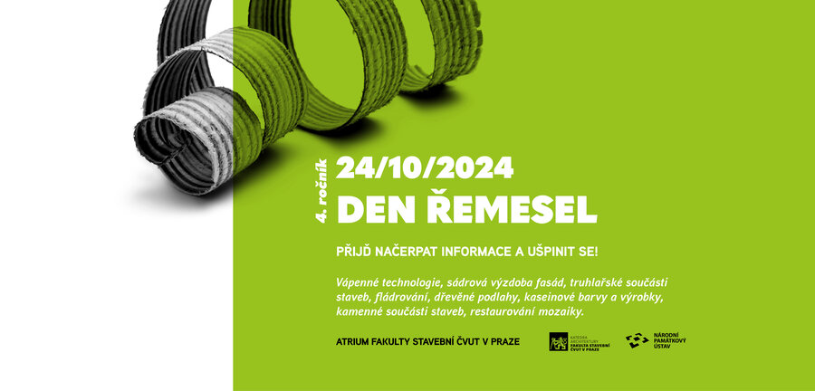 Přijďte načerpat nové informace a ušpinit se! Národní památkový ústav a Katedra architektury FSv ČVUT v Praze vás zve na Den řemesel 2024.