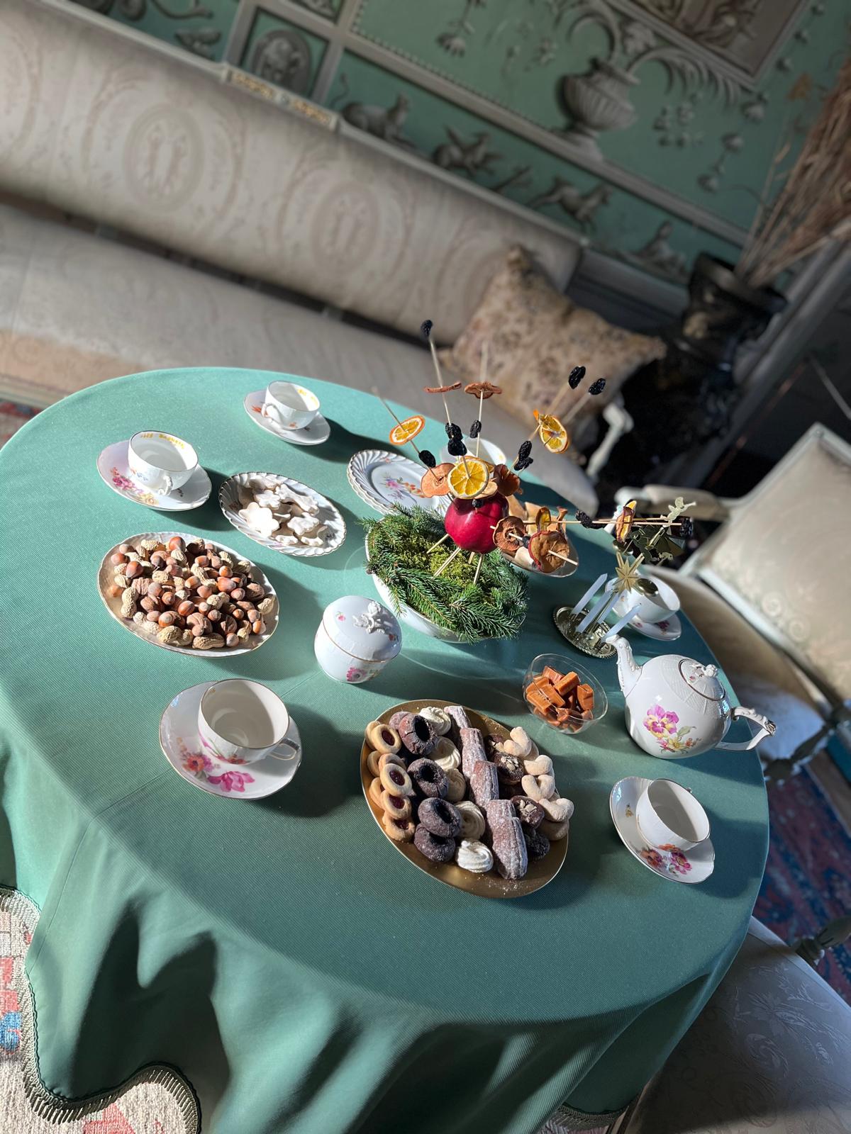Vánočně vyzdobené reprezentační interiéry, včetně Sálu předků. Slavnostně prostřená jídelna a symbol Vánoc – ozdobený strom s dárky. Prozradíme Vám, jaké se dávaly na stromeček první ozdoby, co se podávalo ke štědrovečerní večeři a další zajímavé věci, týkající se těchto nejkrásnějších svátků v roce. Za příznivého počasí bude otevřená jižní terasa s pohledem do (doufáme) bíle zasněžené okolní krajiny.