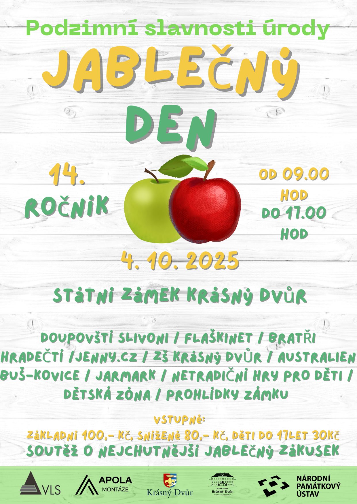 Státní zámek Krásný Dvůr Vás srdečně zve na největší kulturní akci roku – Jablečný den 2025!