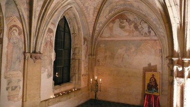 V klášterním skriptoriu u věže bude pro vás připraveno několik tvůrčích stanovišť. Jejich hlavním tématem bude kaligrafie (krasopis) a vitráže (malba na sklo)