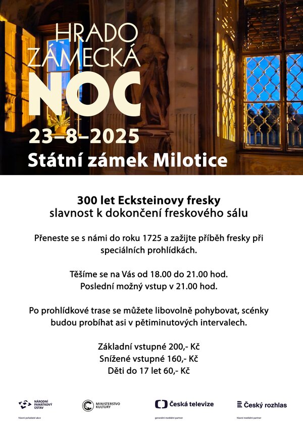 Zámek Milotice bude mít v rámci Hradozámecké noci 2025 netradičně prodlouženou otevírací dobu od 18:00 do 21:00!
