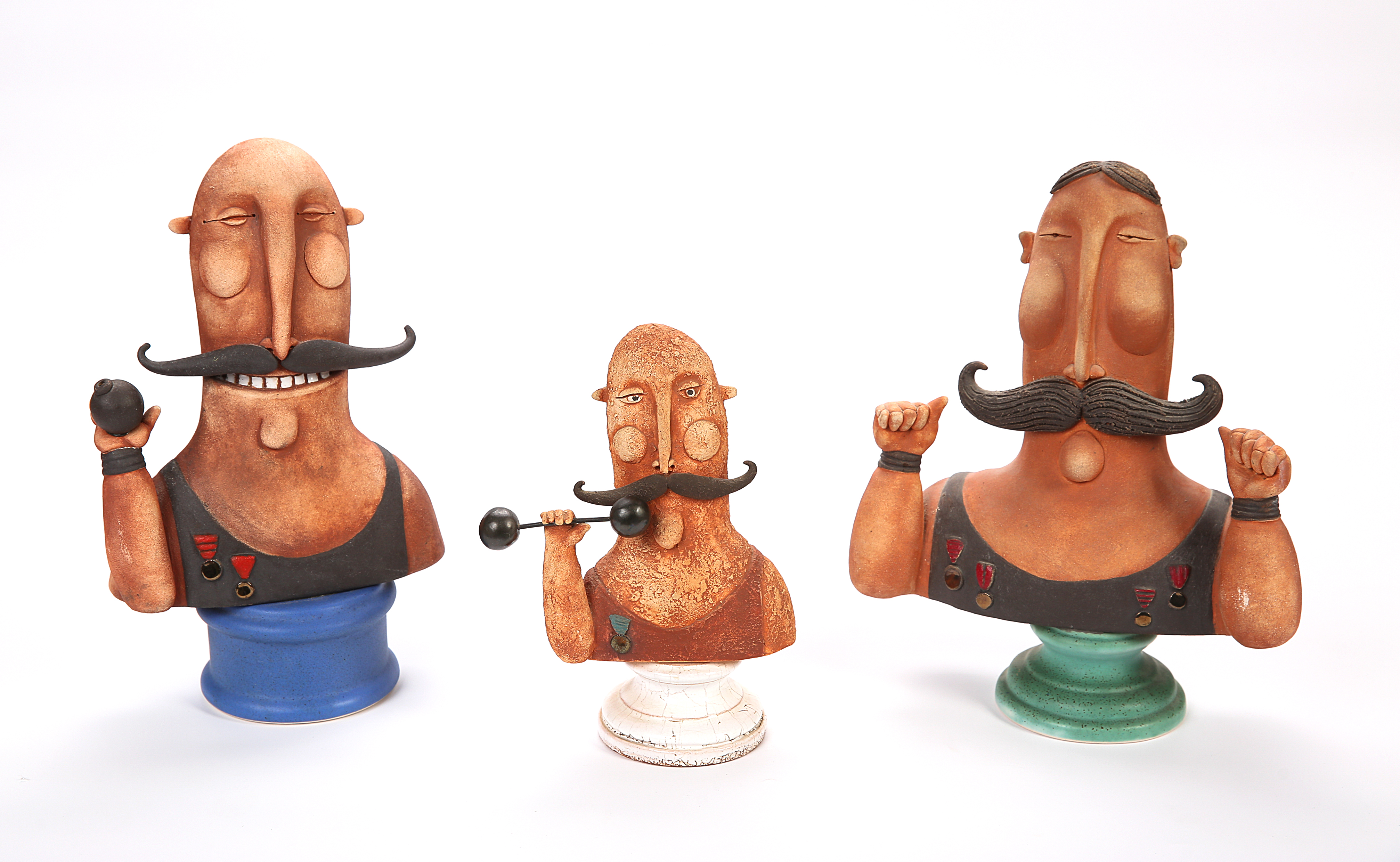 A kdopak nám povylézá s pece? Ještě rozhajcování a žízniví jsou to všelijací bodří kumpáni, různí kamarádi z mokré čtvrti. A za nimi jdou v rytmu swingu světští, různí kejklíři nebo polykači mečů. Jsou zde i pouťoví siláci, majitelé střelnic a s nimi tu pokuřují milovníci doutníků ze všech koutů světa a společnosti. Plavčíci Důrové, závodníci na prastarých motocyklech, aviatici a další pestrá sbírka úsměvných lidských figur a figurek. A na ten barevný galimatyáš s nadhledem kouká celá ošatka strýců a tetek. Noblesní postavy z historie a ležérní hráči golfu. Na to teatrum mundi s úsměvem hledí též Chaplinův tulák a starý klaun s drátěnými křídly. A všichni ti hlinění, prošlí ohněm zpívají sborem: „Tá Ždánická mája tenká…“.