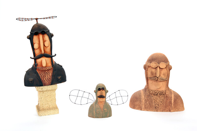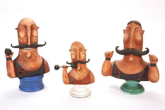 Pro úplnost je třeba uvést, že tento úsměvný svět je stvořen zručnými prstíky z keramické hmoty zvané jemná šamotová. Ta má po výpalu krémovou barvu. Finální barevnost Homolových keramik je výsledkem spolupráce různých engob i kysličníků kovů. A pro autora je typický jemný mat a decentní barevnost. Ale na vaše záludné otázky vám určitě odpoví sám vystavující autor. Ještě zbývá abychom dodali, že keramik Jaroslav Homola je zakládajícím členem Sdružení keramiků Brno, člena Unie výtvarných umělců ČR. Je autorem celé řady významných cen. Můžeme namátkou jmenovat Zlatý oříšek České Televize Brno, IGNIS BRUNENSIS (ceny pro nejlepší ohňostrůjce) cena pro Brněnské kulturní léto či festival piva PIVEX atd. Součástí jeho práce jsou zahraniční výstavy a dílny: