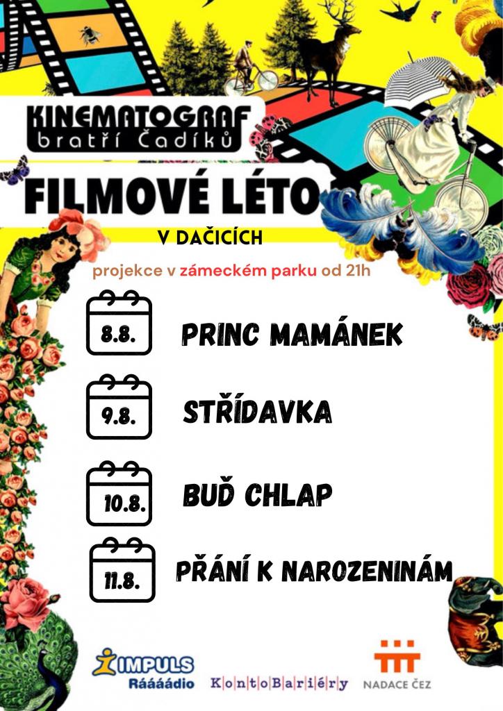 Již popáté bude v dačickém zámeckém parku promítat Kinematograf bratří Čadíků. V pátek 11. 8. 2023 nás od 21:00 čeká komedie Přání k narozeninám.