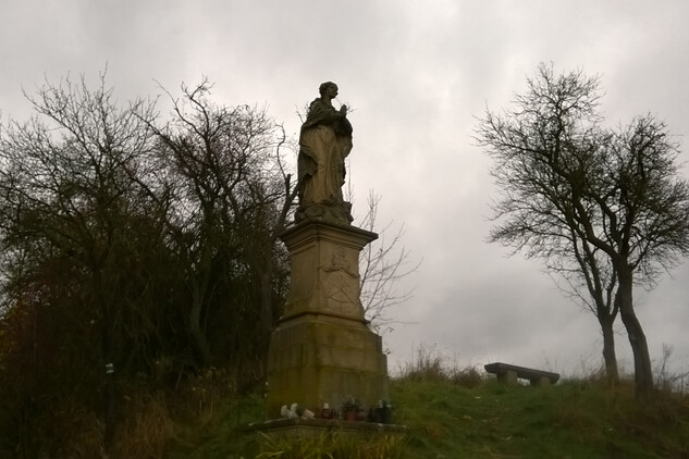 Kratší trasa: Kdo je rozhodnutý pro krátkou variantu výletu, čeká ho stejná cesta zpět od rozcestníku doprava po zelené značce. Až sejdete z prudkého kopce na křižovatku cest, budete stále pokračovat po zelené rovně dolů. Zprvu vede cesta po lukách, později se vnoříte do starého úvozu, který jistě pamatuje doby, kdy se tudy odsouzenci ubírali na popraviště u šibeničního vrchu. Tato cesta vás spolehlivě dovede až ke stvolenské silnici. Jako poslední pozdravení pocestným, či memento odsouzenců tu stojí Panna Maria Immaculata (neposkvrněná). Socha pochází z dílny Josefa Herschera kolem roku 1738. Dál už cesta vede doprava po asfaltce až do Manětína.