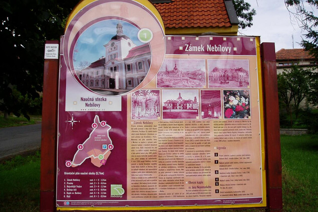 Okružní naučná stezka má délku 5,7 km. Začíná u barokního zámku v Nebílovech a má celkem 6 zastavení s informačními tabulemi.