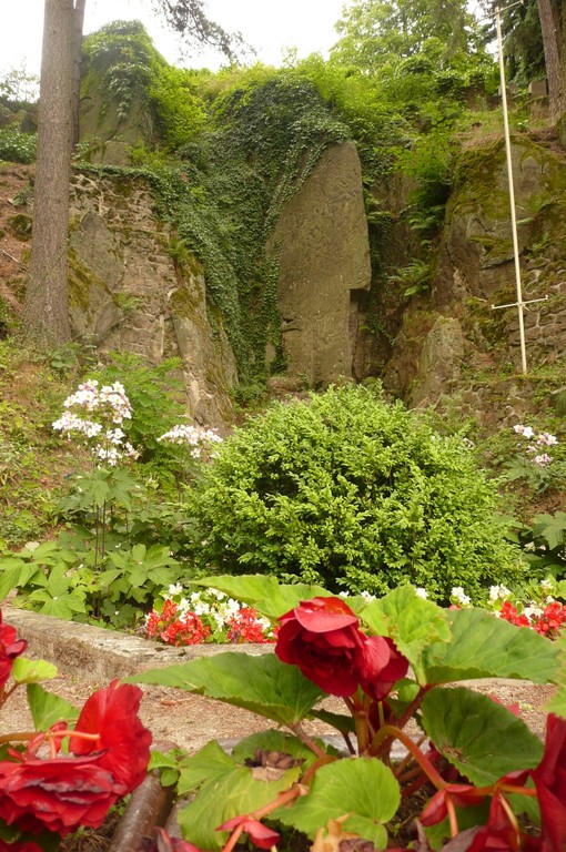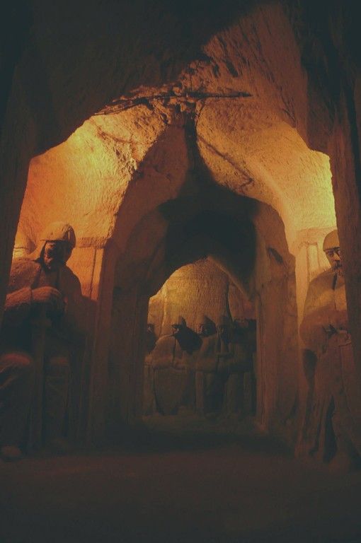 Vchod do nitra hory hlídá mohutný kamenný lev, zvíře podivuhodné krásy. O to podivuhodnější, že Rolínek ve svém životě skutečného lva nikdy neviděl a pracoval jenom podle obrázku.