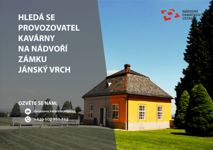 Národní památkový ústav, územní památková správa v Kroměříži vyhlašuje veřejnou soutěž o nejvhodnější nabídku – zámek Jánský Vrch – Nabídka k pronájmu prostor kavárny v období od 1. 3. 2024 do 28. 2. 2027.