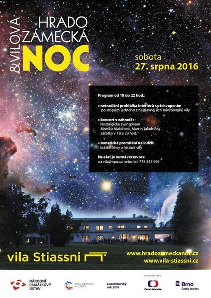 Na sobotní noc připravila rodičovská vila Grety Tugendhatové, vila Löw-Beer v Brně, zajímavý hudební program v přilehlé zahradě a komentované prohlídky v nové muzejní expozici. Na zahradě vily vystoupí brněnské jazzové legendy se sólisty Jaromírem Hniličkou, Helenou Blehárovou a Tiborem Lenským a gospelový sbor SKYEY GOSPEL. Během koncertu Hvězdy a hvězdičky nad Brnem zazní evergreeny minulého století, tradiční gospely i moderní skladby v gospelových úpravách. V čase před koncertem, ale také po něm se budou ve vile konat komentované prohlídky za zvýhodněnou cenu. Návštěvníky čeká na závěr večera příjemné překvapení.