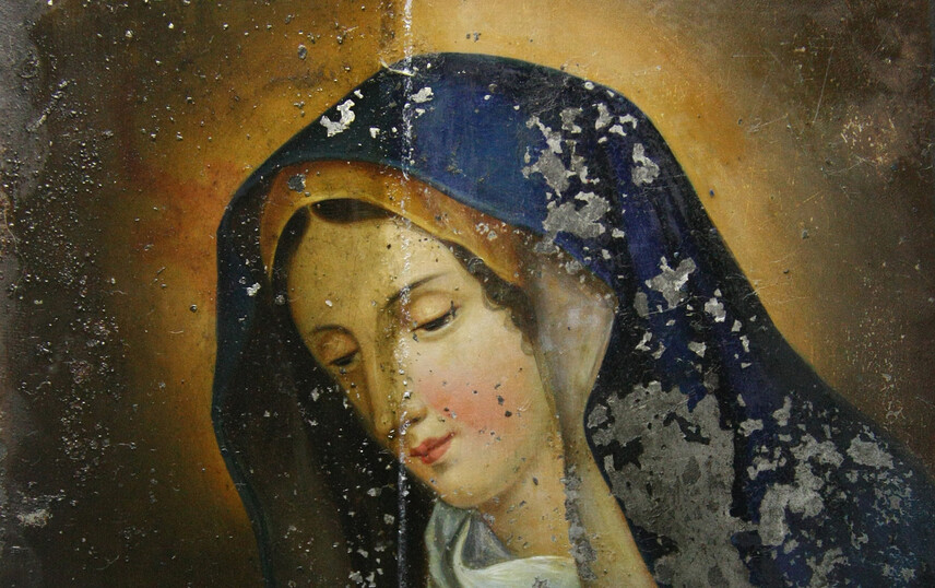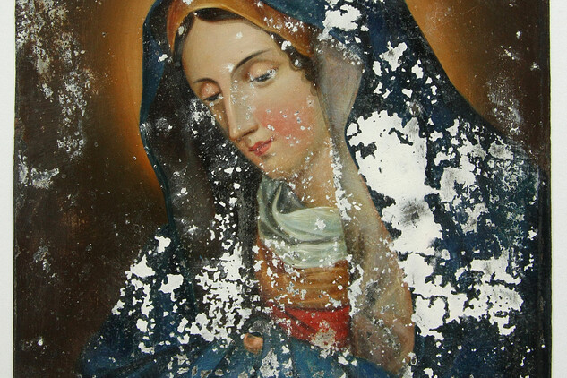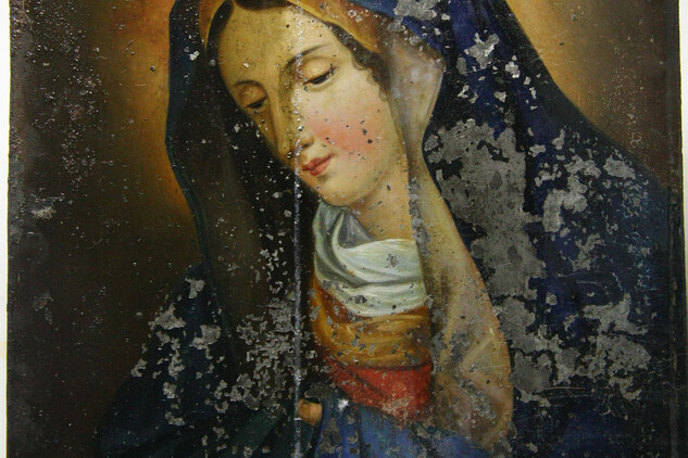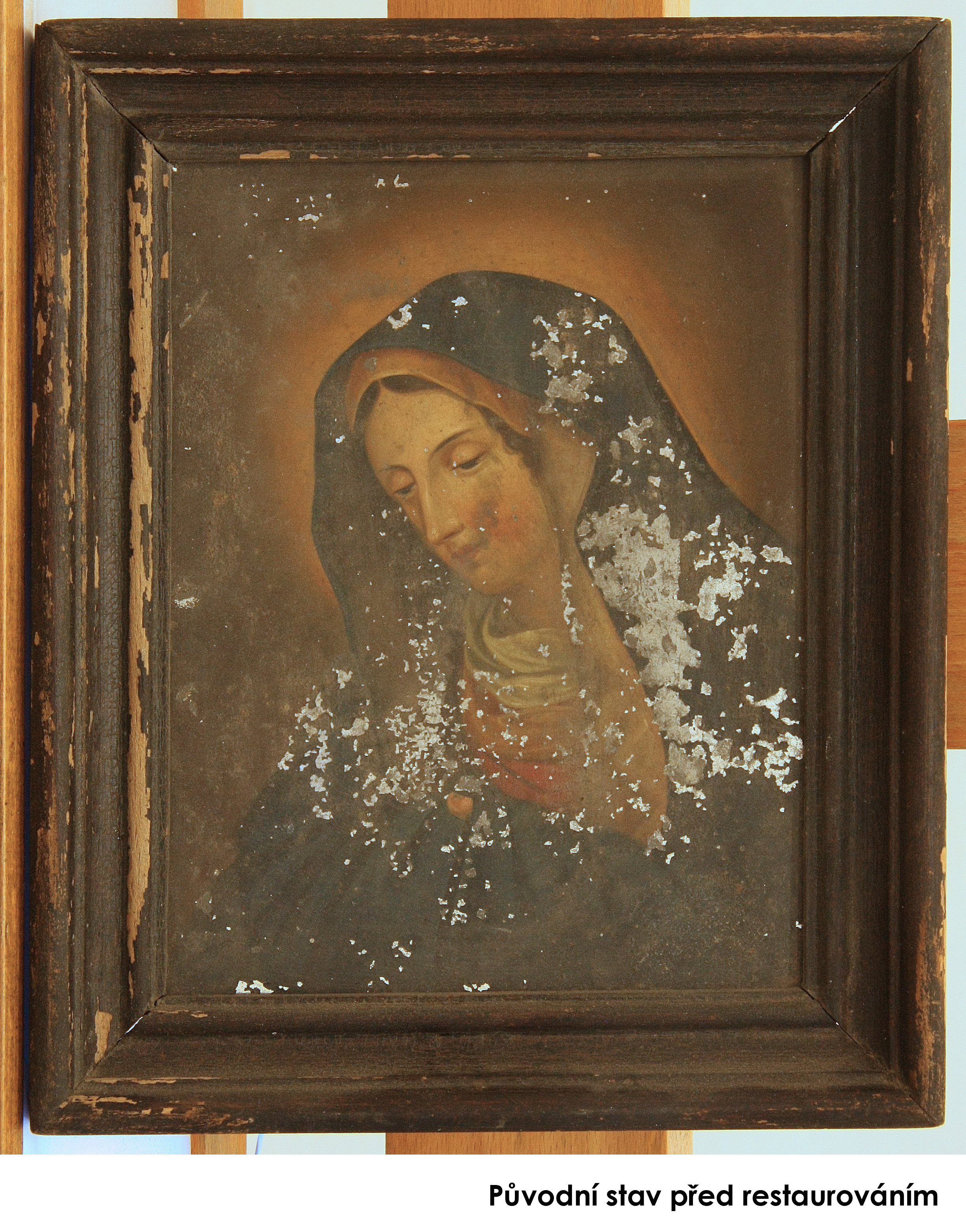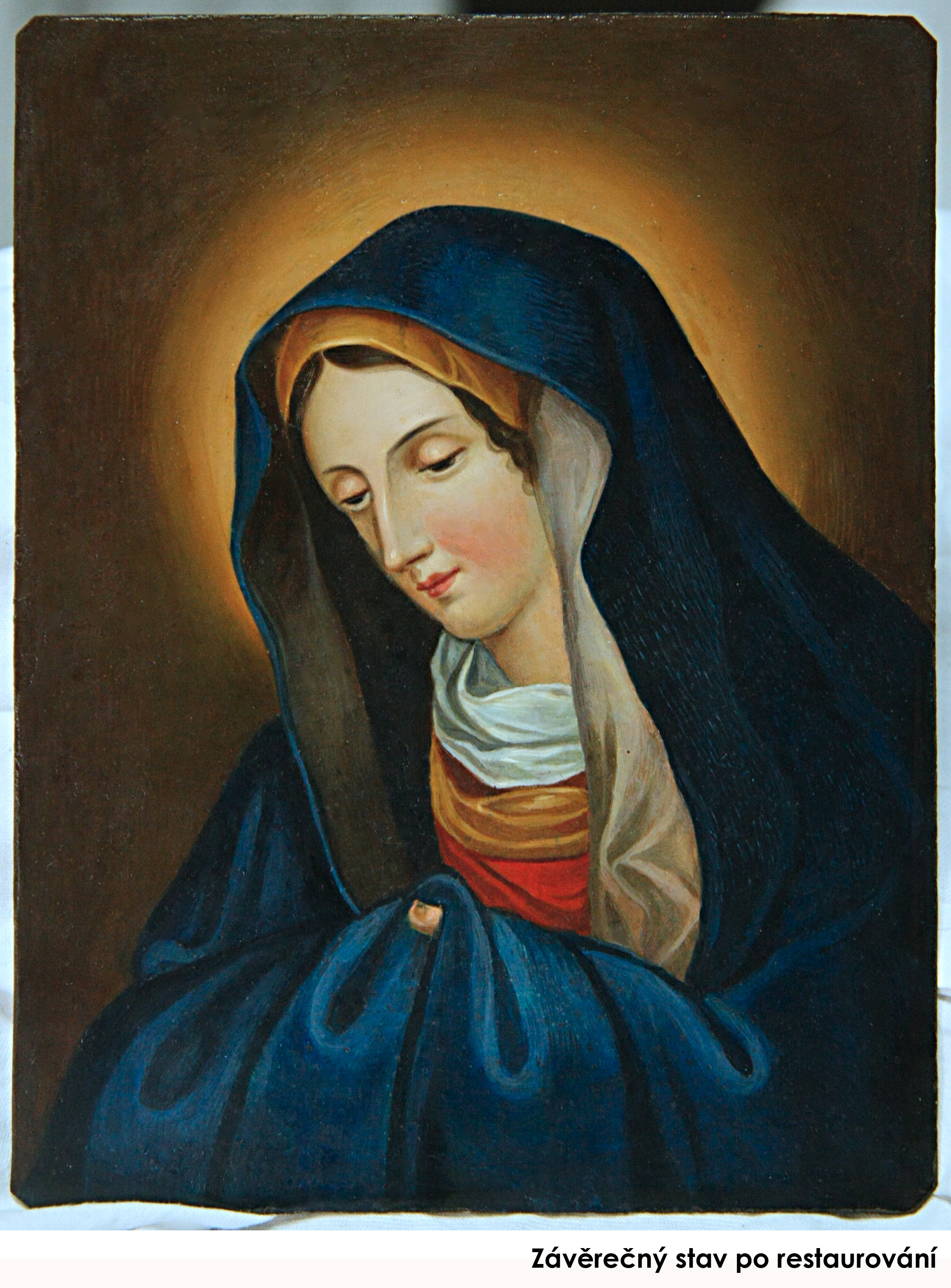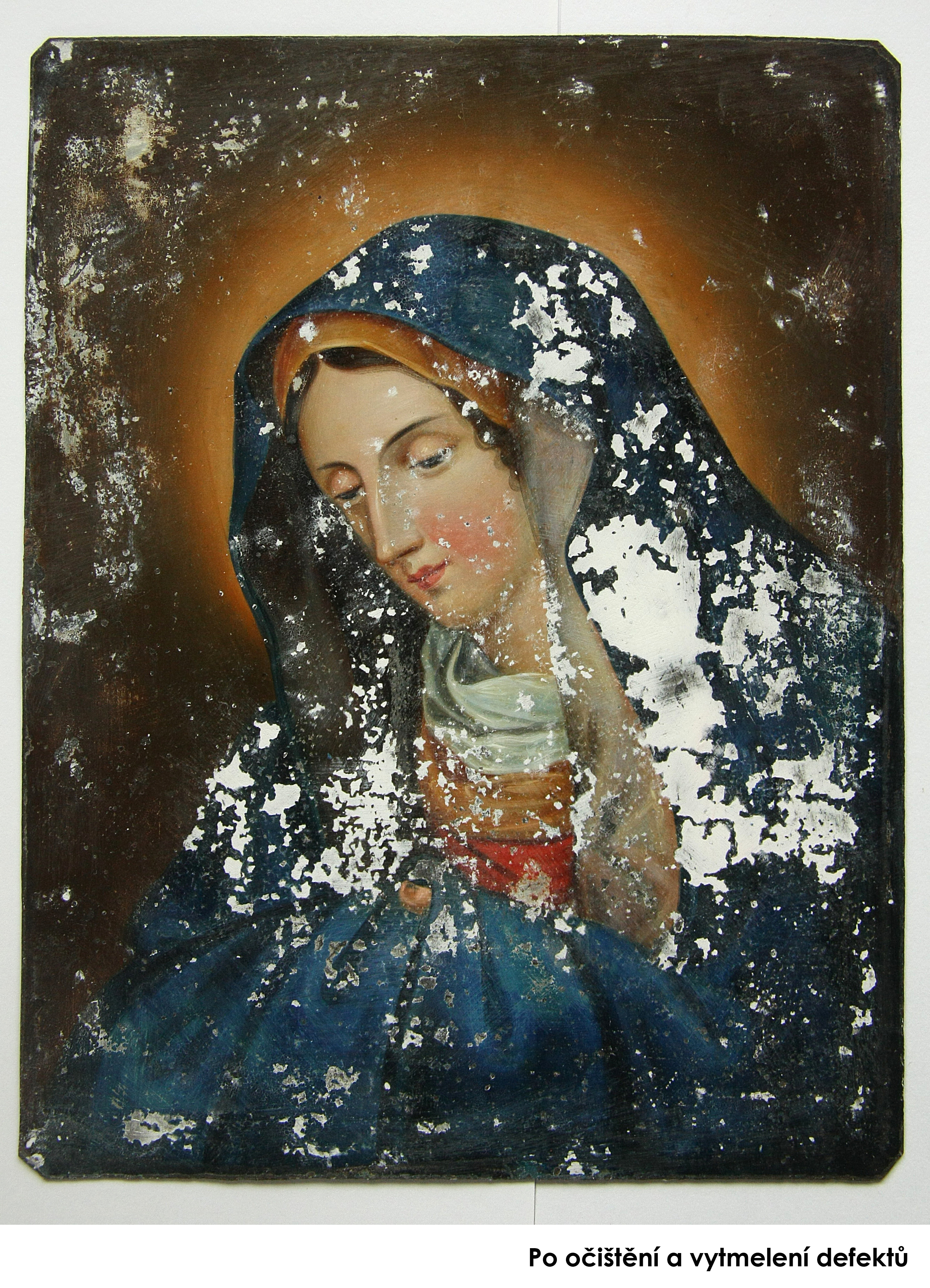 II. Restaurování obrazu Panny Marie, olejomalba na železném plechu z 19. století, 21,5cm x 17cm, autor neznámý, SZ Kunštát, restaurátor Akad. mal. Olga Trmalová
