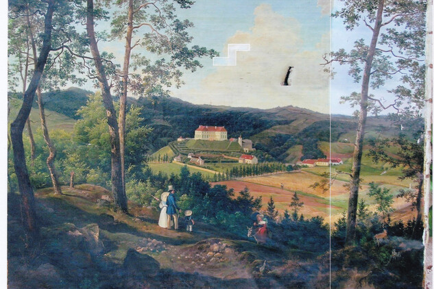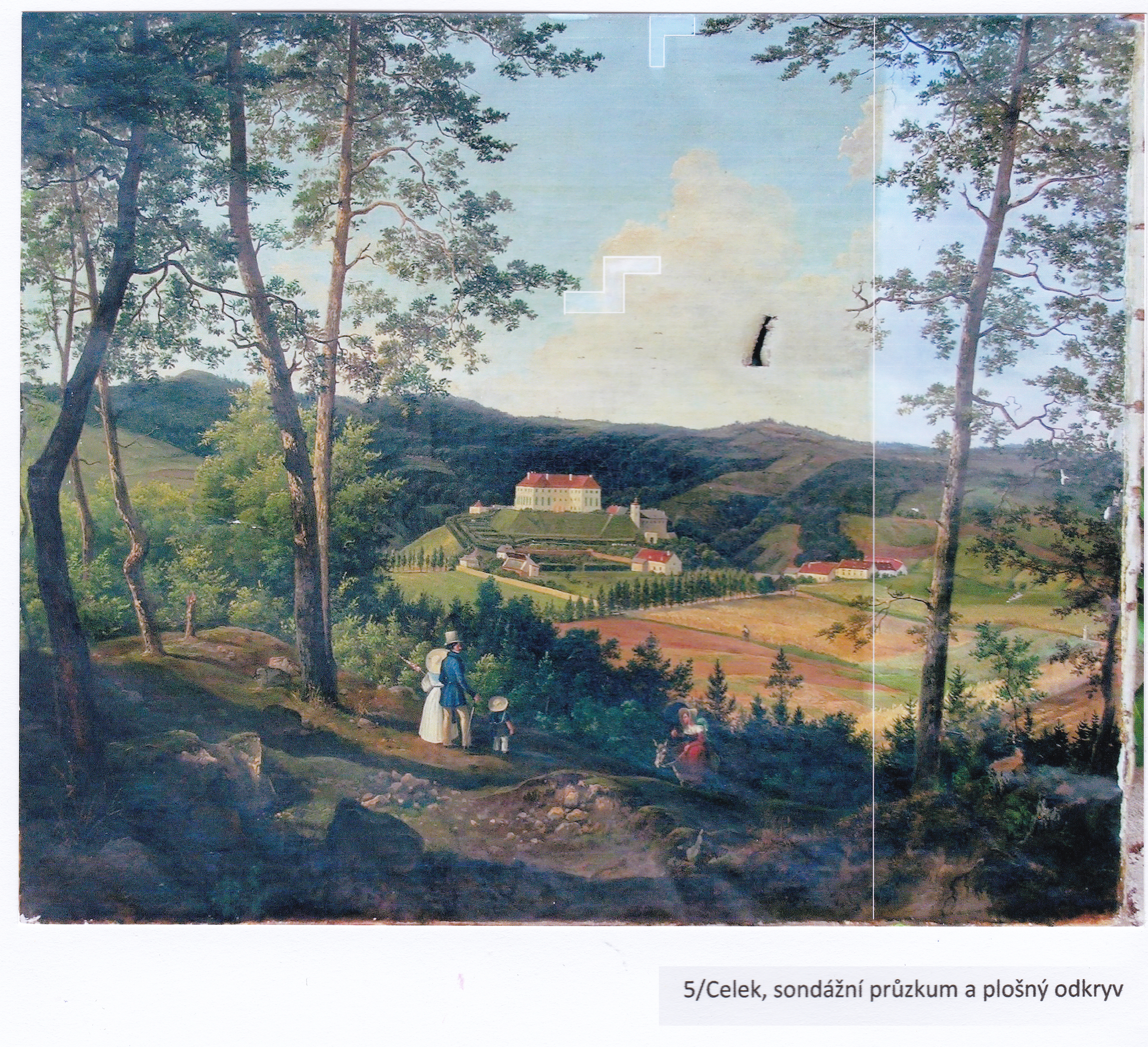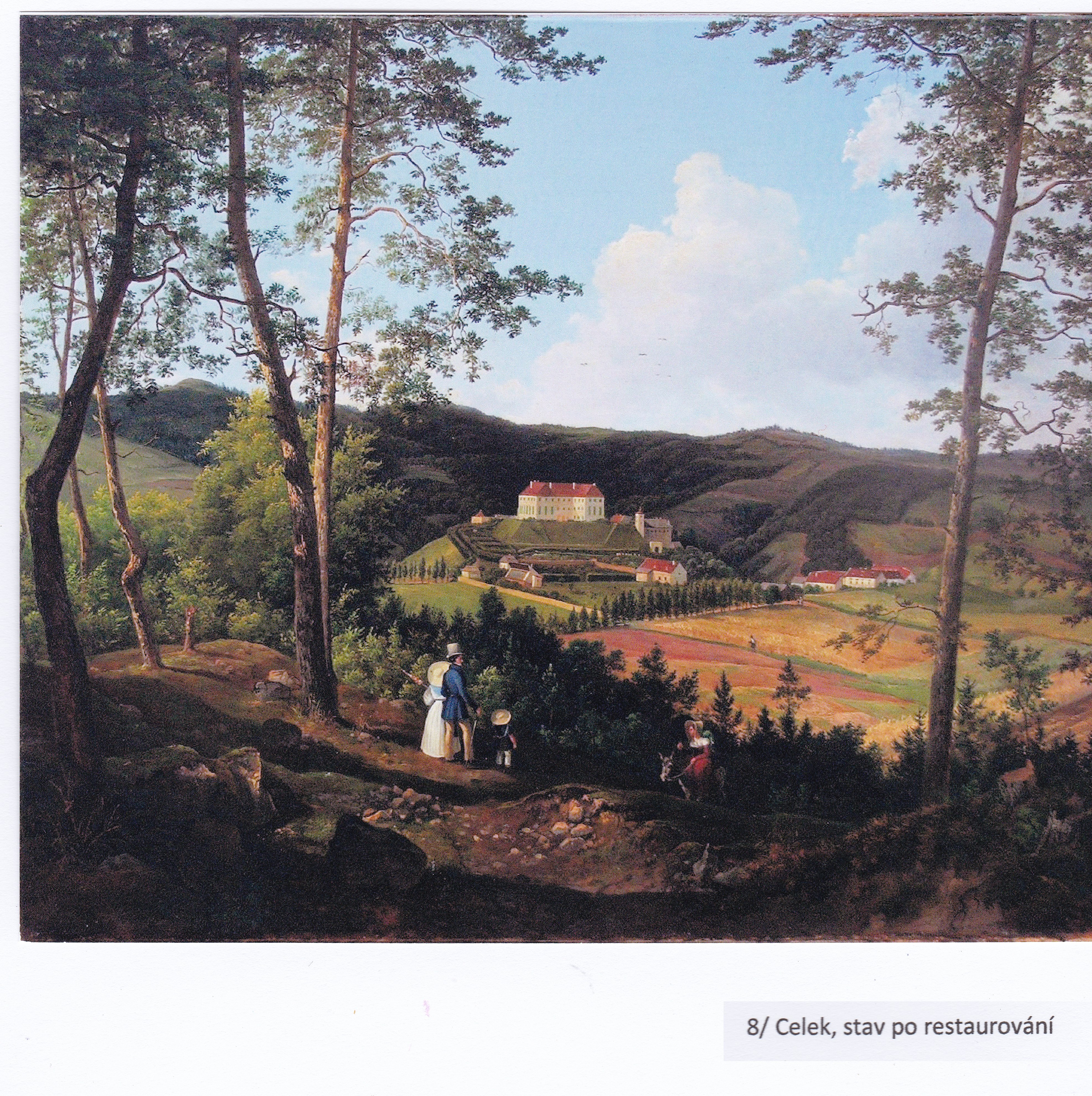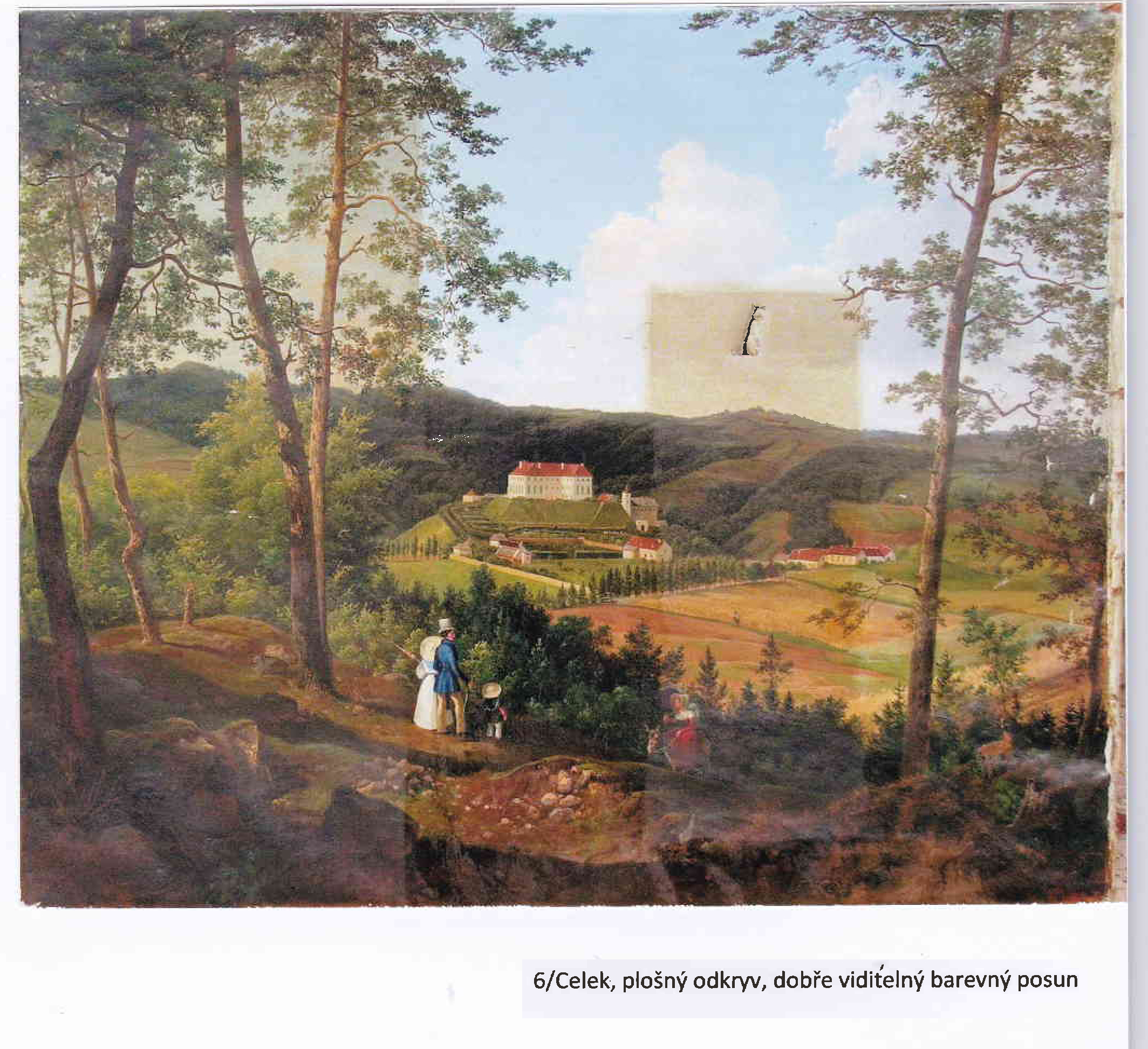 I. Restaurování obrazu "Pohled na zámek Kunštát", olej na plátně z roku 1839, 71cm x 87cm, autor Josef Feid, SHZ Horšovský Týn, restaurátor PhDr. Pavel Klimeš